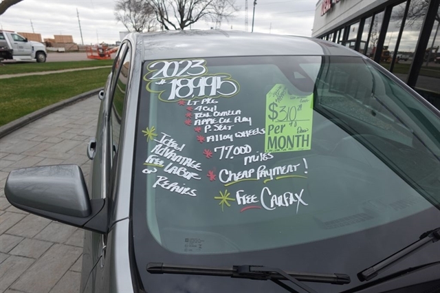Here's a great value on a 1 owner 2023 Equinox LT that we've priced to sell for only 18,995.00. The options include the LT Package, Rear View Camera, Apple Car Play, Power Seat, Keyless Entry, Alloy Wheels, and of course a long list of Standard Power and Safety Features and the balance of remaining Factory Warranty. We offer bank financing with excellent rates and terms right here at the dealership, stop and see why so many people will only purchase their used vehicles from Ideal Wheels with the original Ideal Advantage which provides no labor charge on most repairs for as long as you own the vehicle. Don't forget to check out the complimentarty Carfax.