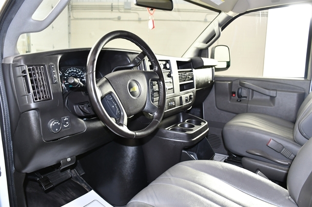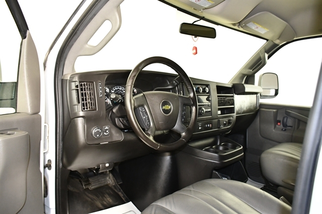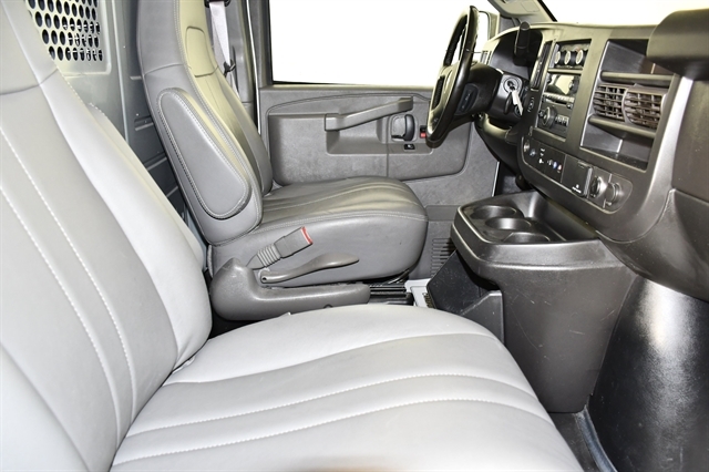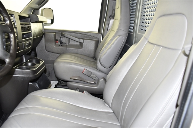 This Chevrolet Express Cargo Van delivers a Gas V6 4.3L/ engine powering this Automatic transmission. VISORS, DRIVER AND FRONT PASSENGER, VINYL, TRANSMISSION, 8-SPEED AUTOMATIC, ELECTRONICALLY CONTROLLED with overdrive and tow/haul mode, includes Cruise Grade Braking and Powertrain Grade Braking (STD), TIRE, SPARE LT245/75R16E ALL-SEASON, BLACKWALL located at rear underbody of vehicle (STD).
