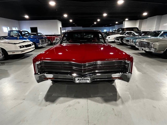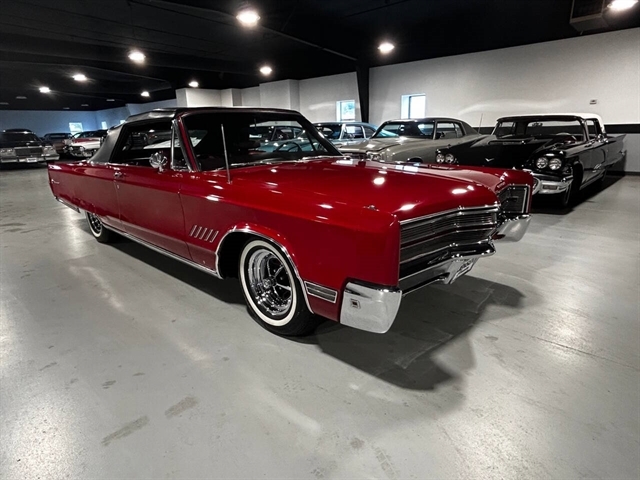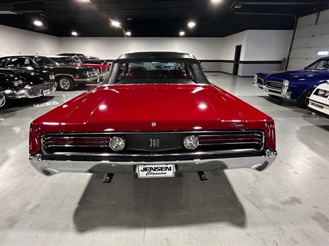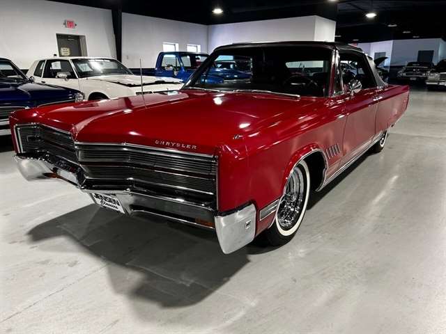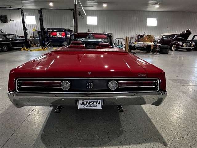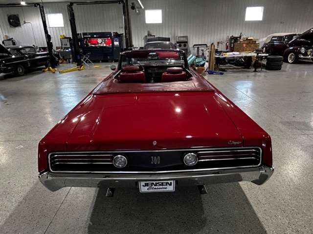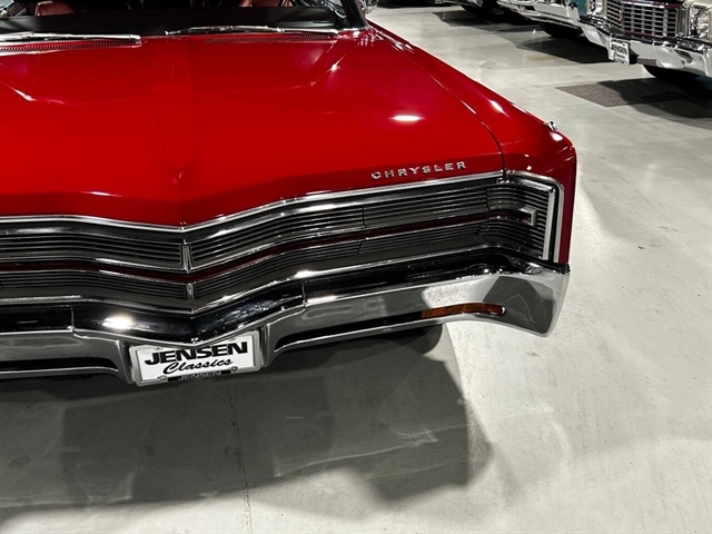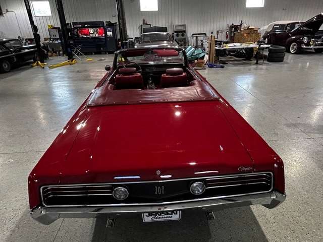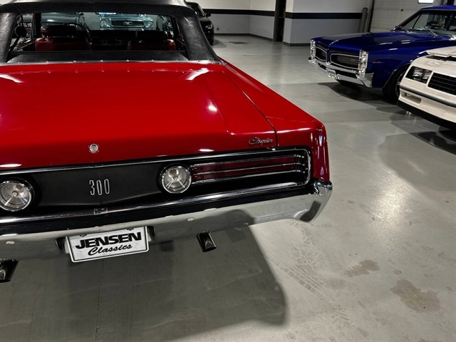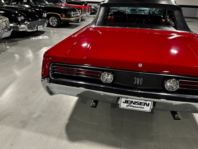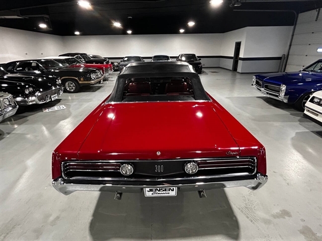 1968 Chrysler 300 Convertible The Chrysler 300 models for 1968 were distinguished by a special grill, front bumper and body decoration treatments. The grill featured a blacked-out finish highlighted by a full width, horizontal bar design and incorporated hidden headlights. The base power plant for the Chrysler 300 was a 440 CI four-barrel carbureted V-8. There were only 2161 Chrysler 300 convertibles produced in 1968. Our1968 300 is stellar. “Scorch Red “paint, metallic red seating and door panels, new red carpeting, and a like new black vinyl convertible top ……striking! 440 magnum V-8 power, Chrysler three-speed automatic transmission, and for a car of its size, surprising power. Power steering, power brakes, cold air conditioning, power windows, power driver seat, drivers remote mirror, vacuum gauge, factory AM/FM radio and more. Riding on white side wall tires mounted to a set of factory OEM Road wheels. (Currently resides at the dealership owner’s home )