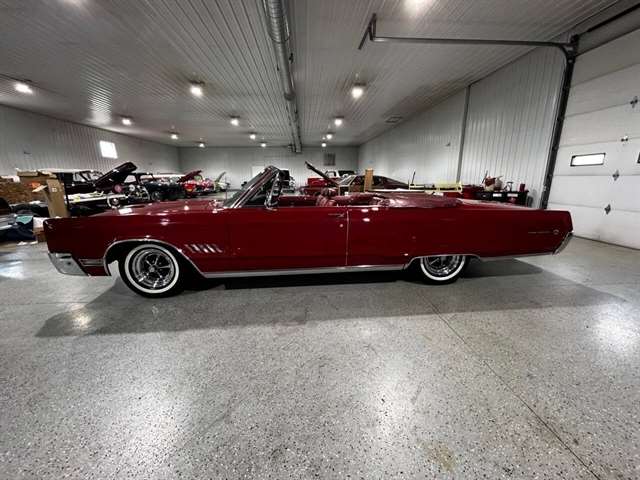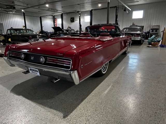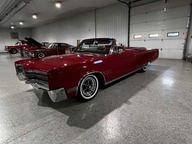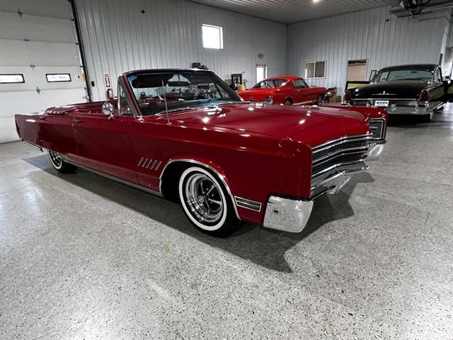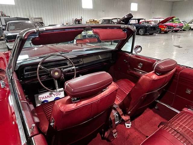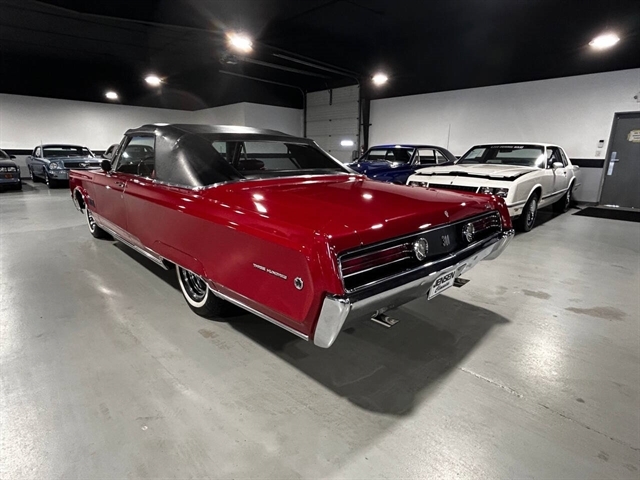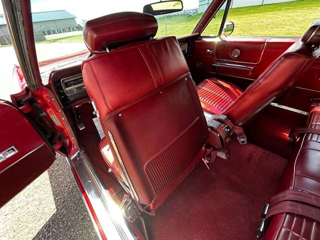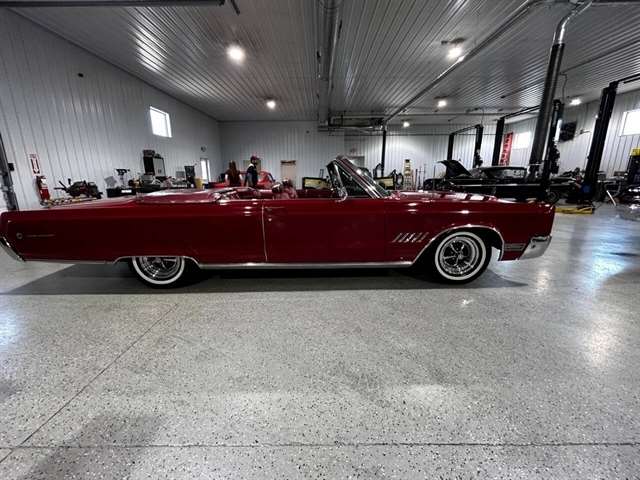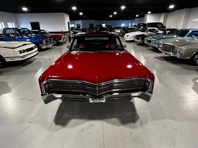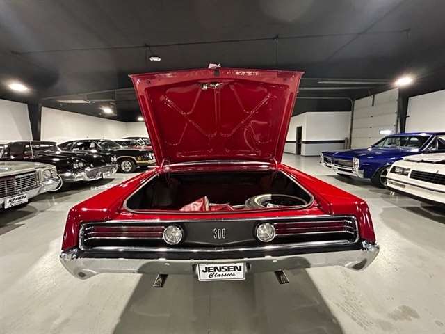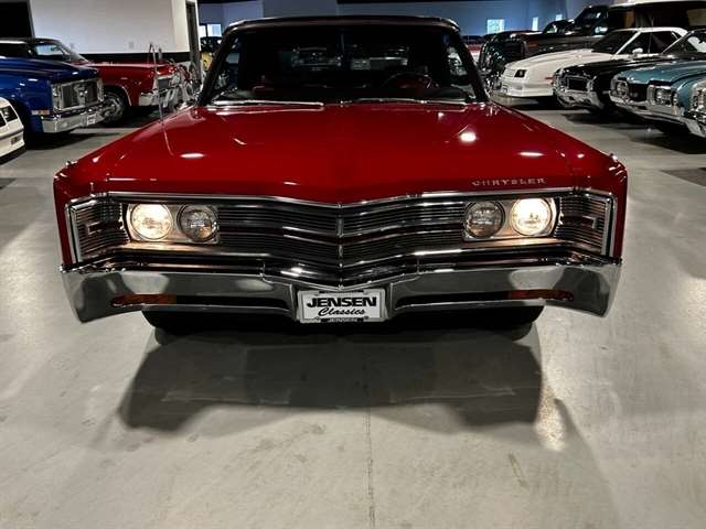 1968 Chrysler 300 Convertible The Chrysler 300 models for 1968 were distinguished by a special grill, front bumper and body decoration treatments. The grill featured a blacked-out finish highlighted by a full width, horizontal bar design and incorporated hidden headlights. The base power plant for the Chrysler 300 was a 440 CI four-barrel carbureted V-8. There were only 2161 Chrysler 300 convertibles produced in 1968. Our1968 300 is stellar. “Scorch Red “paint, metallic red seating and door panels, new red carpeting, and a like new black vinyl convertible top ……striking! 440 magnum V-8 power, Chrysler three-speed automatic transmission, and for a car of its size, surprising power. Power steering, power brakes, cold air conditioning, power windows, power driver seat, drivers remote mirror, vacuum gauge, factory AM/FM radio and more. Riding on white side wall tires mounted to a set of factory OEM Road wheels. (Currently resides at the dealership owner’s home )