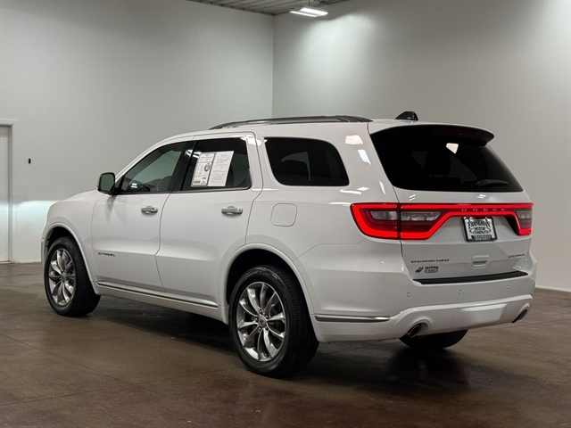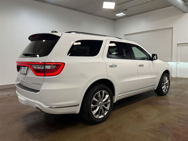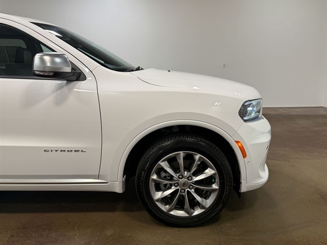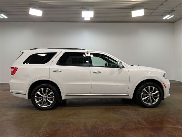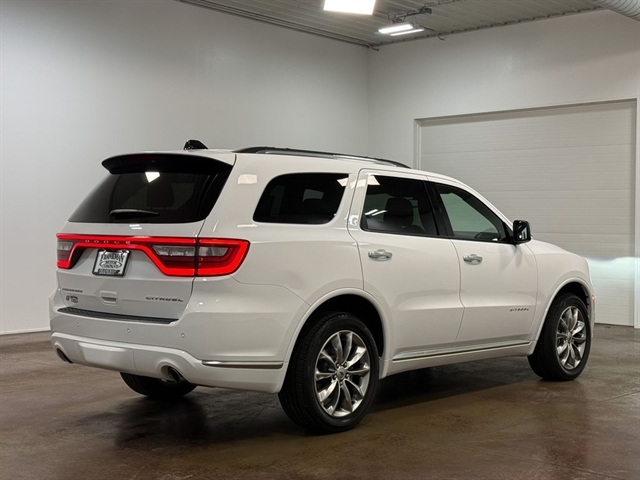 Powered by a robust 3.6L V6 24V VVT engine and equipped with an 8-Speed Automatic transmission and All-Wheel Drive, the Durango Citadel delivers a thrilling and efficient performance. With an EPA-estimated 18 MPG in the city and 25 MPG on the highway, this SUV strikes the perfect balance between power and fuel economy.