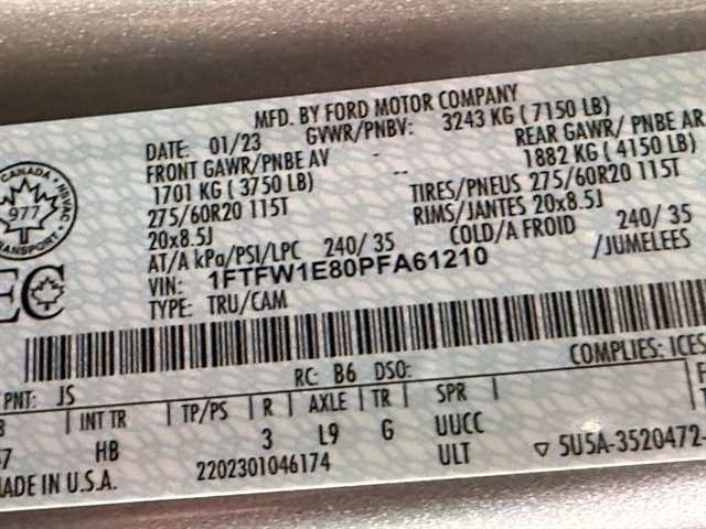| VIN | 1FTFW1E80PFA61210 |
