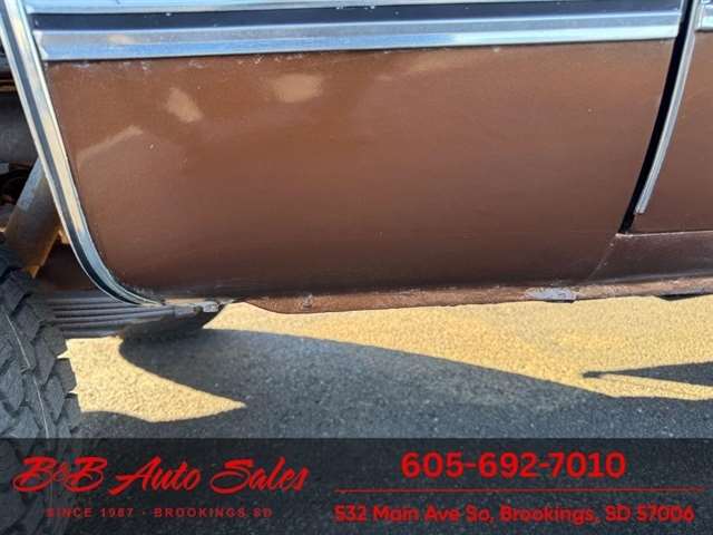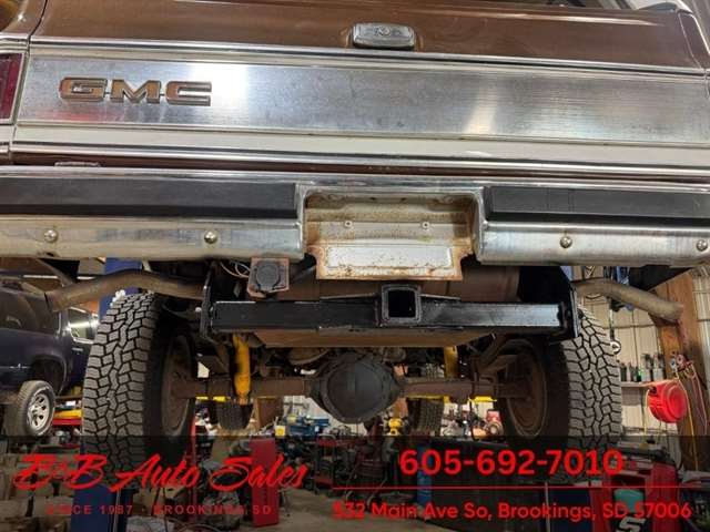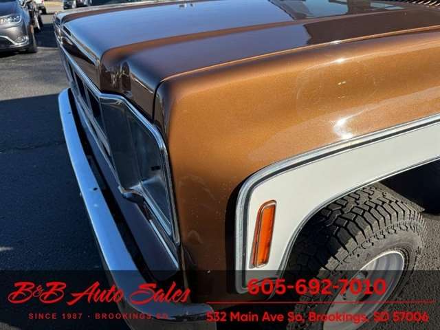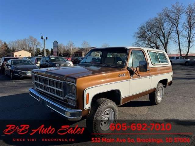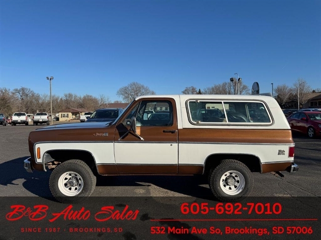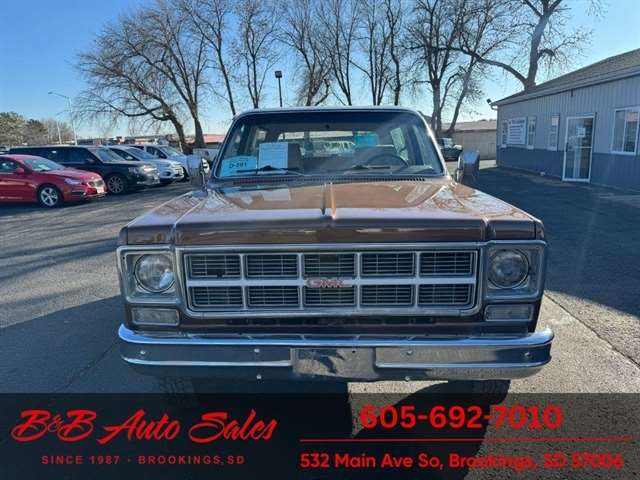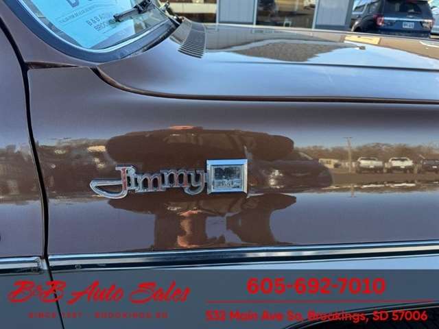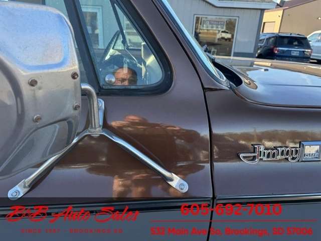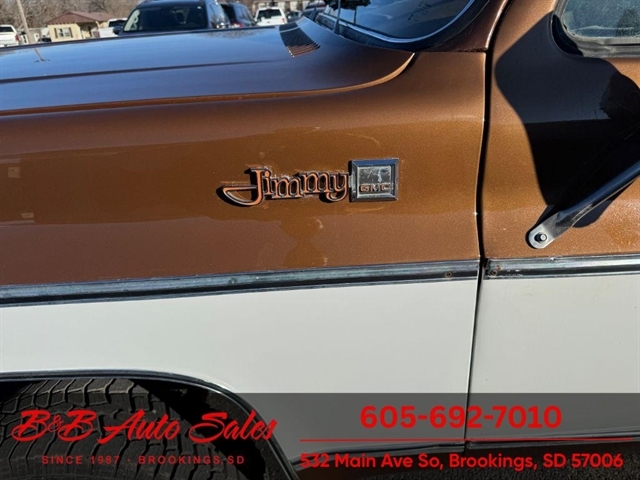 BUY WITH CONFIDENCE as this 1978 GMC JImmy has gone thru inspection and test drive. We personally work and drive these ourselves so can answer any questions you may have. We show you any issues with over 100 pictures and videos of a walk around, running and driving.*350 V8*AUTOMATIC*4WD*POWER WINDOWS & LOCKS MECHANICAL- This JImmy has been thru our inspection. The dome light does not work. *NEW BATTERY*NEW TIRES*REPAIRED TURN SIGNALS*REPAIRED TRANSFER CASE LEAKEXTERIOR- The body is in good shape. It has had a repaint at one time and a driver quality job. We repainted the hood as it was faded. Good driver quality truck. See the video for an up close inspection. Text Dirk at 605-695-7391 for running and driving video`s . INTERIOR- The interior is in very good condition with new seat covers in the oem style in Tan. We added new carpet up front, and repainted the door panels. The dash has a couple small cracks in radio speaker grille . DIRK`S COMMENTS- With 37 years of experience I will give you my opinion of the JImmy. It is a nice driver quality Jimmy that is very solid. A great investment as the square body suv`s are going up. UNDERNEATH- The underneath is solid. MILEAGE- The odometer reads 94454. I do not have any documentation as if actual and being sold exempt miles because of it`s age. History- A Jimmy from North Dakota.TEST DRIVE- We personally test drive our vehicles so we know what they drive like. I have drove this one 25 miles and it drives good.VALUE- We price our vehicles to market value and try to be one of the best prices of vehicles in comparable condition. Our goal is to give you a good buy on a vehicle you are going to have fun with and enjoy. We do have a document fee but only $50 which is lower than most other dealers.LIKE IT OR RETURN IT- As being in business for 37 years we do not want to sell anybody a vehicle they do not want. As many of our vehicles are sold site unseen we will take the vehicle back and give a refund minus shipping and a restocking fee. You are responsible for the shipping both ways and a $1000 restocking fee. You have 3 days to notify us you are not happy with the vehicle and we will start the return process. Ask for more details.VIDEOS- Call, text or email for videos of driving the vehicle and of the engine running and accessories working. Text Dirk at 605-695-7391. Click here to apply for financing: Credit App Call or text Dirk at 605-695-7391 or Darren 605-695-9555 with any questions. B and B Auto Sales, 532 Main Ave So Brookings SD 57006