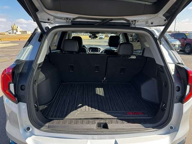 Elevation Edition (Black GMC Center Caps w/Black GMC Lettering, Black Mirror Caps, Darkened Front Grille, Roof-Mounted Luggage Rack Black Side Rails, and Wheels: 19`` x 7.5`` Gloss Black Painted Aluminum), License Plate Front Mounting Package, Preferred Equipment Group 4SA, AWD, 2 USB Data Ports, 2 USB Data Ports w/SD Card Reader, 3.47 Axle Ratio, 4-Wheel Disc Brakes, 6 Speakers, 6-Speaker Audio System Feature, 8-Way Power Driver Seat Adjuster, ABS brakes, Air Conditioning, Alloy wheels, AM/FM radio: SiriusXM, Apple CarPlay/Android Auto, Auto High-beam Headlights, Auto-dimming door mirrors, Auto-dimming Rear-View mirror, Automatic temperature control, Bluetooth® For Phone, Brake assist, Bumpers: body-color, Cold Air Grille Shutter, Compass, Custom Molded Front & Rear Splash Guards (LPO), Delay-off headlights, Driver & Front Passenger Heated Seats, Driver door bin, Driver vanity mirror, Dual front impact airbags, Dual front side impact airbags, Electronic Stability Control, Emergency communication system: OnStar and GMC connected services capable, Exterior Parking Camera Rear, Four wheel independent suspension, Front & Rear Black GMC Emblems (LPO), Front anti-roll bar, Front Bucket Seats, Front Center Armrest, Front dual zone A/C, Front fog lights, Front reading lights, Fully automatic headlights, Garage door transmitter, Heated door mirrors, Heated front seats, Heated steering wheel, High-Intensity Discharge Headlights, Illuminated entry, Lane Departure Warning System, Low tire pressure warning, Memory seat, Occupant sensing airbag, Outside temperature display, Overhead airbag, Overhead console, Panic alarm, Passenger door bin, Passenger vanity mirror, Perforated Leather-Appointed Seat Trim, Power door mirrors, Power Driver Lumbar Control, Power driver seat, Power Liftgate, Power passenger seat, Power steering, Power windows, Radio data system, Radio: GMC Infotainment Audio System w/8`` Display, Rear anti-roll bar, Rear seat center armrest, Rear window defroster, Rear window wiper, Remote keyless entry, Roof rack: rails only, Security system, SiriusXM Radio, Speed control, Speed-sensing steering, Split folding rear seat, Spoiler, Steering wheel mounted audio controls, Tachometer, Telescoping steering wheel, Tilt steering wheel, Traction control, Trip computer, Turn signal indicator mirrors, Variably intermittent wipers, and Wheels: 18`` x 7`` Machined Aluminum w/Gray Accents.