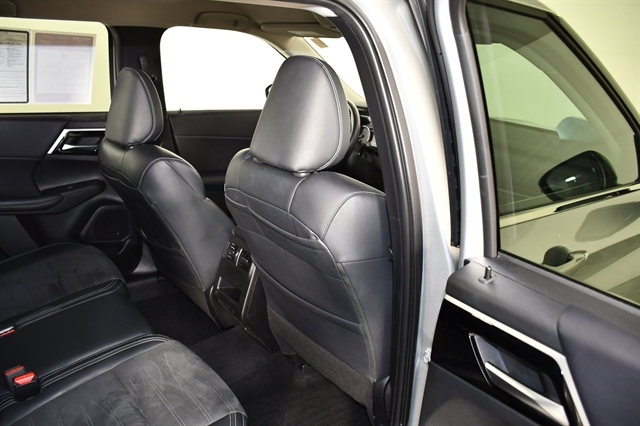 Check out the rest of the great features on this car! 4WD, 3rd row seats: split-bench, 4-Wheel Disc Brakes, 5.694 Axle Ratio, 6 Speakers, ABS brakes, Air Conditioning, Alloy wheels, AM/FM radio: SiriusXM, Android Auto & Apple CarPlay, Auto High-beam Headlights, Automatic temperature control, Brake assist, Bumpers: body-color, Driver door bin, Driver vanity mirror, Dual front impact airbags, Dual front side impact airbags, Electronic Stability Control, Emergency communication system: Mitsubishi Connect w/ 24-month trial, Exterior Parking Camera Rear, Four wheel independent suspension, Front anti-roll bar, Front Bucket Seats, Front Center Armrest w/Storage, Front dual zone A/C, Front fog lights, Front reading lights, Fully automatic headlights, Headlight cleaning, Heated door mirrors, Heated Front Bucket Seats, Heated front seats, Illuminated entry, Knee airbag, Leather Shift Knob, Leather steering wheel, Low tire pressure warning, Navigation System, Occupant sensing airbag, Outside temperature display, Overhead airbag, Overhead console, Panic alarm, Passenger door bin, Passenger vanity mirror, Power door mirrors, Power driver seat, Power Liftgate, Power steering, Power windows, Radio data system, Radio: AM/FM 9.0 Navigation w/Smartphone Link, Rain sensing wipers, Rear anti-roll bar, Rear seat center armrest, Rear side impact airbag, Rear window defroster, Rear window wiper, Reclining 3rd row seat, Remote keyless entry, Security system, Speed control, Speed-Sensitive Wipers, Split folding rear seat, Spoiler, Steering wheel mounted audio controls, Synthetic Leather Seat Trim, Tachometer, Telescoping steering wheel, Tilt steering wheel, Traction control, Trip computer, Turn signal indicator mirrors, and Variably intermittent wipers.