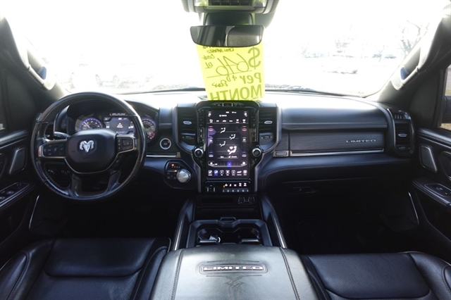 Here's a Big Ram with that Big Rig Styling that sets these trucks apart from all others. This Ram comes with the legendary 5.7L Hemi that produces an ass kicking 395hp and that will certainly take care of any towing or hauling needs you may have. The other options include the Limited Package, Panoramic Sunroof, Navigation, 12'' Touch Screen Audio & Climate Controls, Sport Hood, Rear View Camera, Leather Seats, Dual Power Seats, Heated & Cooled Seats, Heated Steering Wheel, Tow Package, 20'' Alloy Wheels, Remote Start, Spray in Bedliner, and of course a long list of Standard Power and Safety features. We offer bank financing with excellent rates and terms right here at the dealership, stop and see why so many people will only purchase their used vehicles from Ideal Wheels with the original Ideal Advantage which provides no labor charge on most repairs for as long as you own the truck.