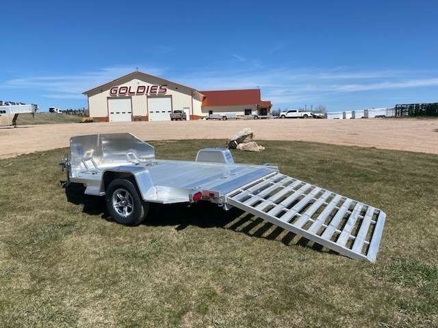 2024 Aluma Model MC210 Motorcycle Trailer, 78" wide and 138" long with front rock guard, 2 Motorcycle brackets with recessed tie rings and 71" wide and 69" long pull out ramp. 3500lb torsion axle rated at 2990lbs. 205/75R14 Aluminum Wheels, Fender steps.