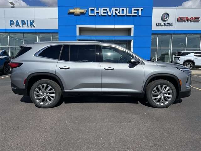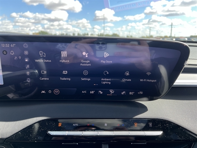 Front Mounting License Plate Bracket Package, Power Package (110-Volt Power Outlet, 2nd Row 1-Touch Flat Folding Seat, 3rd Row 60/40 Power Split-Folding Bench, Head-Up Display, Heated Wiper Park, Inside Rearview Auto-Dimming Rear Camera Mirror, Memory Settings, and Universal Home Remote), Preferred Equipment Group 1SD, AWD, 12 Speakers, 3rd row seats: split-bench, 4-Wheel Disc Brakes, ABS brakes, Air Conditioning, Alloy wheels, AM/FM radio: SiriusXM with 360L, Apple CarPlay/Android Auto, Auto High-beam Headlights, Auto-dimming door mirrors, Auto-dimming Rear-View mirror, Automatic temperature control, Bose Premium 12-Speaker Audio System, Brake assist, Bumpers: body-color, Compass, Delay-off headlights, Driver 4-Way Power Lumbar Seat Adjuster, Driver 8-Way Power Seat Adjuster, Driver door bin, Driver vanity mirror, Dual front impact airbags, Dual front side impact airbags, Electronic Stability Control, Emergency communication system: OnStar and Buick connected services capable, Four wheel independent suspension, Front anti-roll bar, Front Bucket Seats, Front Center Armrest, Front dual zone A/C, Front Passenger 4-Way Power Lumbar Seat Adjuster, Front Passenger 6-Way Power Seat Adjuster, Front reading lights, Fully automatic headlights, Heated door mirrors, Heated Driver & Front Passenger Seats, Heated front seats, Heated steering wheel, Illuminated entry, Leather steering wheel, Leatherette Seat Trim, Low tire pressure warning, Navigation System, Occupant sensing airbag, Outside temperature display, Overhead airbag, Overhead console, Panic alarm, Passenger door bin, Passenger vanity mirror, Power door mirrors, Power driver seat, Power Liftgate, Power Panoramic Sunroof w/Sunshade, Power passenger seat, Power steering, Power windows, Premium audio system: Buick Infotainment System, Radio data system, Radio: Infotainment Center, Rear air conditioning, Rear anti-roll bar, Rear reading lights, Rear side impact airbag, Rear window defroster, Rear window wiper, Remote keyless entry, Security system, SiriusXM w/360L Trial Subscription, Speed control, Speed-sensing steering, Spoiler, Steering wheel mounted audio controls, Tachometer, Telescoping steering wheel, Tilt steering wheel, Traction control, Trip computer, Turn signal indicator mirrors, Variably intermittent wipers, Voltmeter, Wheels: 20`` Alloy w/Medium Android Finish, Wireless Apple CarPlay, and Wireless Google Android Auto.