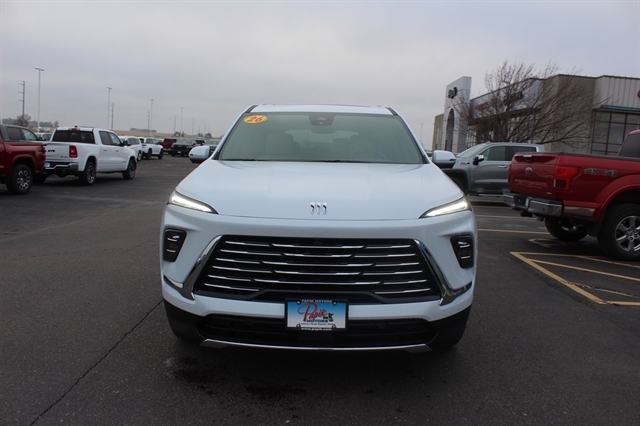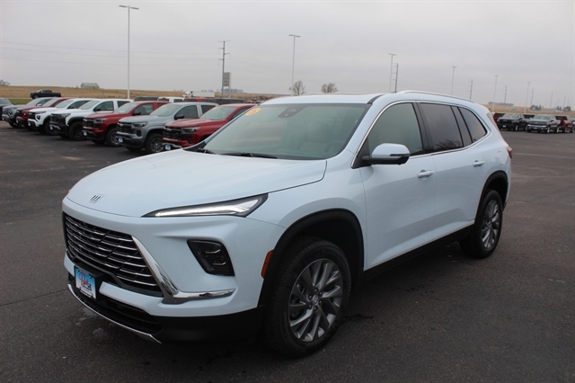 Power Package (110-Volt Power Outlet, 2nd Row 1-Touch Flat Folding Seat, 3rd Row 60/40 Power Split-Folding Bench, Head-Up Display, Heated Wiper Park, Inside Rearview Auto-Dimming Rear Camera Mirror, Memory Settings, and Universal Home Remote), AWD, 12 Speakers, 3rd row seats: split-bench, 4-Wheel Disc Brakes, ABS brakes, Air Conditioning, Alloy wheels, AM/FM radio: SiriusXM with 360L, Apple CarPlay/Android Auto, Auto High-beam Headlights, Auto-dimming door mirrors, Auto-dimming Rear-View mirror, Automatic temperature control, Bose Premium 12-Speaker Audio System, Brake assist, Bumpers: body-color, Compass, Delay-off headlights, Driver 4-Way Power Lumbar Seat Adjuster, Driver 8-Way Power Seat Adjuster, Driver door bin, Driver vanity mirror, Dual front impact airbags, Dual front side impact airbags, Electronic Stability Control, Emergency communication system: OnStar and Buick connected services capable, Four wheel independent suspension, Front anti-roll bar, Front Bucket Seats, Front Center Armrest, Front dual zone A/C, Front Passenger 4-Way Power Lumbar Seat Adjuster, Front Passenger 6-Way Power Seat Adjuster, Front reading lights, Fully automatic headlights, Heated door mirrors, Heated Driver & Front Passenger Seats, Heated front seats, Heated steering wheel, Illuminated entry, Leather steering wheel, Leatherette Seat Trim, Low tire pressure warning, Navigation System, Occupant sensing airbag, Outside temperature display, Overhead airbag, Overhead console, Panic alarm, Passenger door bin, Passenger vanity mirror, Power door mirrors, Power driver seat, Power Liftgate, Power Panoramic Sunroof w/Sunshade, Power passenger seat, Power steering, Power windows, Premium audio system: Buick Infotainment System, Radio data system, Radio: Infotainment Center, Rear air conditioning, Rear anti-roll bar, Rear reading lights, Rear side impact airbag, Rear window defroster, Rear window wiper, Remote keyless entry, Security system, SiriusXM w/360L Trial Subscription, Speed control, Speed-sensing steering, Spoiler, Steering wheel mounted audio controls, Tachometer, Telescoping steering wheel, Tilt steering wheel, Traction control, Trip computer, Turn signal indicator mirrors, Variably intermittent wipers, Voltmeter, Wheels: 20`` Alloy w/Medium Android Finish, Wireless Apple CarPlay, and Wireless Google Android Auto.