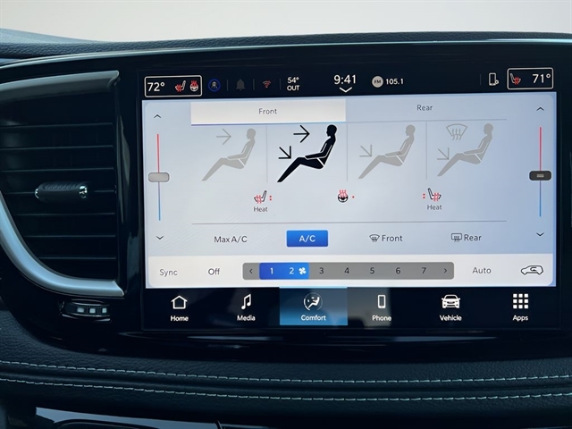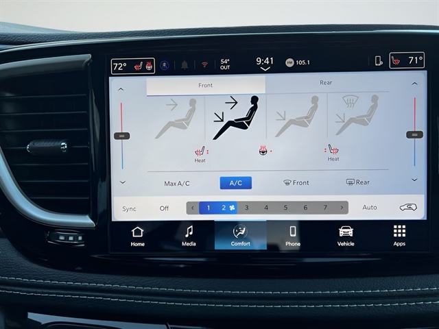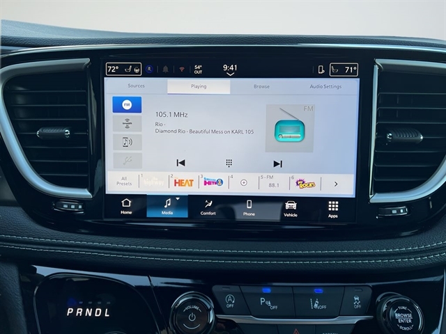 This model's Forward Collision Warning system alerts the driver to potential front-end collisions, enhancing safety. Protect it from unwanted accidents with a cutting edge backup camera system. This mini van offers Android Auto for seamless smartphone integration. This Chrysler Pacifica has automated speed control that adjusts to maintain a safe following distance, enhancing highway driving convenience. Bluetooth technology is built into this vehicle, keeping your hands on the steering wheel and your focus on the road. Keep your hands warm all winter with a heated steering wheel in this model . The leather seats in this model are a must for buyers looking for comfort, durability, and style. This unit's Lane Departure Warning helps keep you in your lane. Apple CarPlay: Seamless smartphone integration for this vehicle - stay connected and entertained on the go! This vehicle keeps you comfortable with Auto Climate. Never get into a cold vehicle again with the remote start feature on this Chrysler Pacifica.