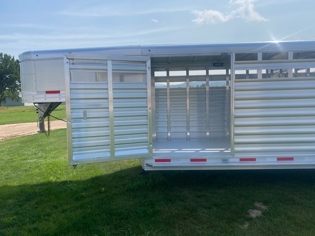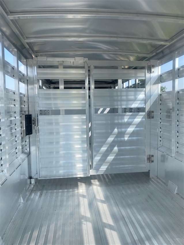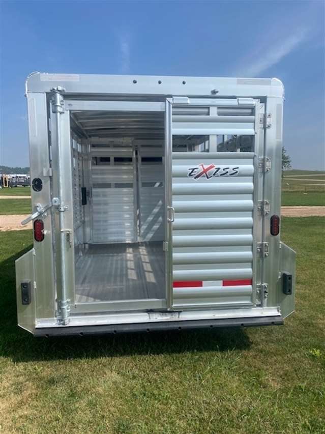 2026 Exiss 7' wide 20' long Gooseneck Stock Trailer, 1 center divide gate with slider, 54" side escape/4Wheeler door, All gates have sliders and slam latches, Non-Slip Extruded flooring, LED Lighting and interior lights inside in each compartment, Tandem 7K EZ lube torsion Axles with brakes at all 4 wheels, 235/80R16 Radial tires, Spare tire and wheel, 8 PLUS 3 Transferable Limited Warranty