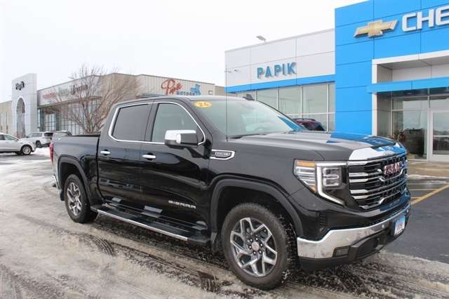 High Capacity Suspension Package, Preferred Equipment Group 4SA (120-Volt Bed Mounted Power Outlet, 120-Volt Interior Power Outlet, 170 Amp Alternator, 2 Charge/Data USB Ports, 2 Type-C Charge-Only Rear USB Ports, 6-Speaker Audio System Feature, Auto-Locking Rear Differential, Auxiliary External Transmission Oil Cooler, Chrome Header & Chrome Grille Insert Bars, Color-Keyed Carpeting Floor Covering, Deep-Tinted Glass, Electric Rear-Window Defogger, Front Frame-Mounted Black Recovery Hooks, Front Rain-Sensing Wipers, HD Rear Vision Camera, Integrated Trailer Brake Controller, Keyless Open & Start, LED Cargo Area Lighting, Manual Tilt-Wheel & Telescoping Steering Column, OnStar Services Capable, Perimeter Lighting, Power Door Locks, Power Front Passenger Windows w/Express Up/Down, Power Front Windows w/Driver Express Up/Down, Power Rear Windows w/Express Down, Push Button Start, Rear Wheelhouse Liners, Remote Vehicle Starter System, SiriusXM w/360L Trial Subscription, Steering Wheel Audio Controls, Theft Deterrent System (Unauthorized Entry), and Wi-Fi Hotspot Capable), ProGrade Trailering System (Hitch View and In-Vehicle Trailering System App), Sierra Safety Plus Package (HD Surround Vision, Rear Cross Traffic Braking, Rear Pedestrian Detection, Safety Alert Seat, Trailer Camera Provisions, Trailer Side Blind Zone Alert, and Ultrasonic Front & Rear Park Assist), SLT Convenience Package (2 Charge/Data USB Ports Inside Center Console, Electronic Precision Shift, Floor-Mounted Center Console, Front Bucket Seats, Power Rake & Telescoping Steering Column, Premium Bose 7-Speaker Sound System, Ventilated Driver & Front Passenger Seats, and Wireless Charging), SLT Preferred Package (Adaptive Cruise Control, Heated 2nd Row Outboard Seats, Power Sliding Rear Window w/Rear Defogger, and Universal Home Remote), SLT Premium Package (20`` Polished Aluminum Wheels and Chrome Wheel To Wheel Assist Steps), Standard Suspension Package, Trailering Package (Hitch Guidance), X31 Off-Road & Protection Package (All-Weather Floor Liner (LPO) and Spray-On Pickup Bedliner w/GMC Logo), X31 Off-Road Package (Dual Exhaust System, Heavy-Duty Air Filter, Hill Descent Control, Off-Road Suspension, and X31 Hard Badge), 10-Speed Automatic, 4WD, Jet Black Leather, 10-Way Power Driver Seat Adjuster w/Lumbar, 10-Way Power Passenger Seat Adjuster w/Lumbar, 3.23 Rear Axle Ratio, 4-Wheel Disc Brakes, 6 Speakers, ABS brakes, Air Conditioning, Alloy wheels, AM/FM radio: SiriusXM with 360L, Apple CarPlay/Android Auto, Auto High-beam Headlights, Auto-dimming door mirrors, Auto-dimming Rear-View mirror, Automatic Emergency Braking, Automatic temperature control, Brake assist, Buckle to Drive, Bumpers: chrome, Compass, Delay-off headlights, Driver door bin, Driver Memory, Driver vanity mirror, Dual front impact airbags, Dual front side impact airbags, Electronic Stability Control, Emergency communication system: OnStar, Engine Block Heater, Following Distance Indicator, Forward Collision Alert, Front & Rear Black Molded Splash Guards (LPO), Front 40/20/40 Split-Bench Seat, Front anti-roll bar, Front Center Armrest w/Storage, Front dual zone A/C, Front fog lights, Front License Plate Kit, Front Pedestrian Braking, Front reading lights, Front wheel independent suspension, Fully automatic headlights, Heated door mirrors, Heated Driver & Front Outboard Passenger Seating, Heated front seats, Heated steering wheel, Illuminated entry, IntelliBeam Automatic High Beam On/Off, Lane Keep Assist w/Lane Departure Warning, Low tire pressure warning, Memory seat, Navigation System, Occupant sensing airbag, Outside temperature display, Overhead airbag, Overhead console, Panic alarm, Passenger door bin, Passenger vanity mirror, Perf Leather-Appointed Front Outboard Seat