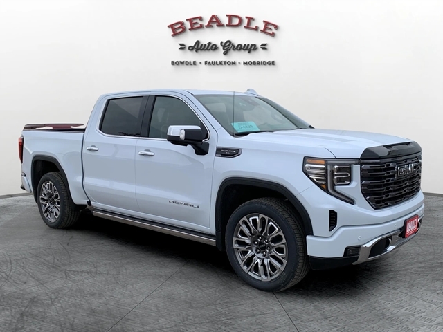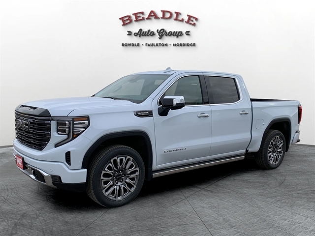 Come see this 2026 GMC Sierra 1500 Denali Ultimate Crew Cab 4WD at Beadle Chevrolet–GMC in Mobridge, South Dakota. We serve customers from Aberdeen, SD, Bismarck, ND, and Pierre, SD — all within two hours. Call us at 605-845-7277 or visit beadleautogroup.com to schedule your test drive!