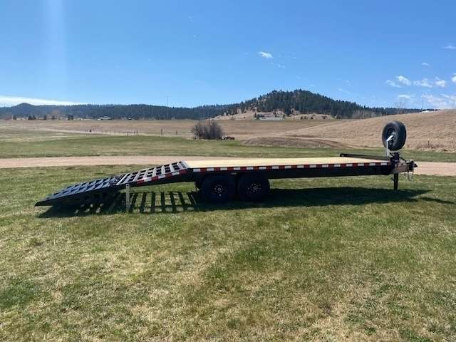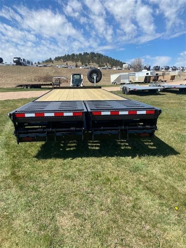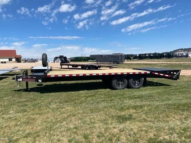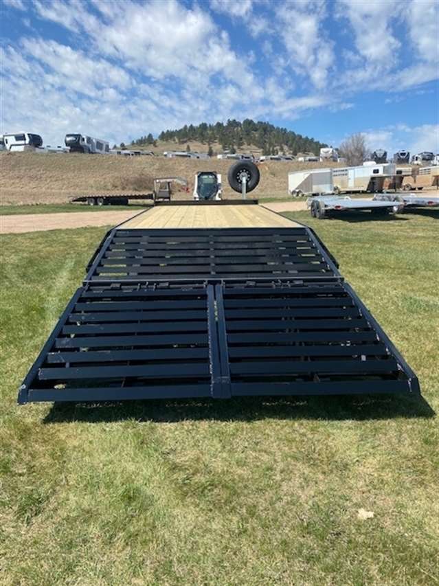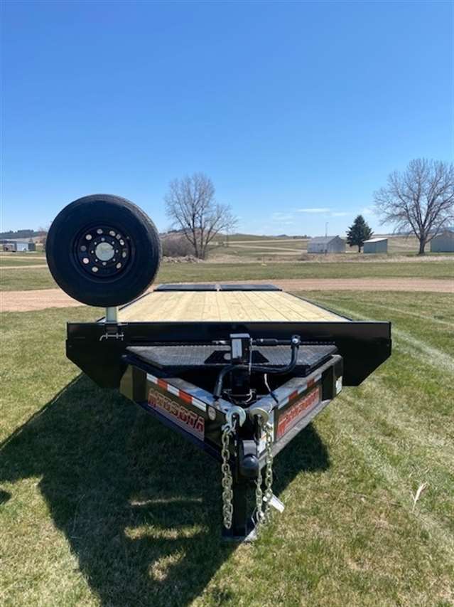 2026 Midsota Model FBGD22 Deck over Bumper pull 102" Wide and 22ft long, 17ft deck with 5ft beaver tail that has the mega ramps when flipped up gives you 22ft of flat deck space. Tandem 7000lb axles with 235/80R16 tires for a GVWR of 15400lbs., 10", 15lb/ft I-Beams, Side rails 5" Stel channel. Black in color. 5 YEAR LIMITED WARANTY