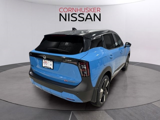 Bold, efficient, and versatile --- meet the *2025 Nissan Kicks SR AWD* in eye-catching Arctic Ice Blue Metallic/Super Black. With all-wheel drive, this compact sport-utility balances spirited performance and sure-footed traction for our Nebraska roads. It features sleek exterior styling like LED projector headlights with automatic high beams, deep-tinted glass, a lip spoiler, heated side mirrors with integrated turn signals, and stylish 17-inch alloy wheels. Inside, you'll enjoy a premium cabin highlighted by Sport cloth/leatherette trim, automatic air conditioning, a 12.3-inch touchscreen display, smart device integration, and ample conveniences like power windows, proximity key with push-button start, and a full suite of safety tech including Intelligent Blind Spot Intervention, Lane Departure Warning, Forward Collision Mitigation, Aerial View Camera System, Rear-Cross Traffic Alert, and more. With city/highway fuel economy rated at *27/34 MPG*, the Kicks SR is great for daily commutes or exploring the countryside.Stop by *Cornhusker Nissan, 2125 Krenzien Dr., Norfolk, NE 68701* to take the Kicks SR AWD for a test drive and see why this one stands out.