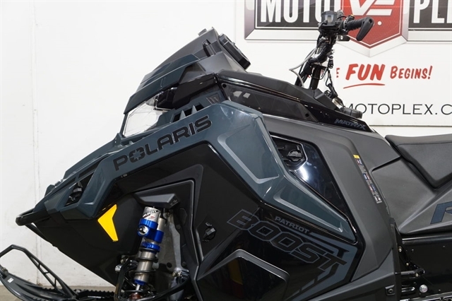 2026 Polaris® Patriot Boost PRO RMK 155. Call Sales for more information: 605-316-5600. *ALL FREIGHT AND SET UP FEES INCLUDED* Color: Gloss Black / Blue Dusk Convenience Package: Manual Start - High Elevation Clutching Handlebar and Display: Standard Bar, 7S Display Rail and Shocks: Black Rail, WALKER EVANS LIGHT Track: 15 x 155 x 2.75 Series 8 Tunnel: Black Tunnel Windshield: Wind Deflector