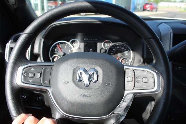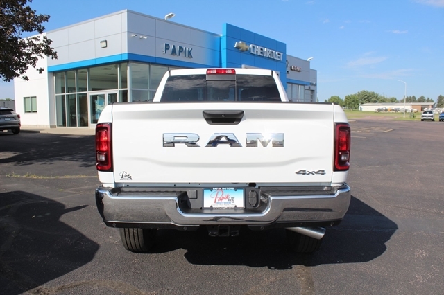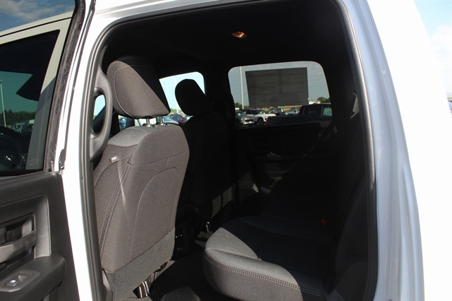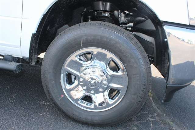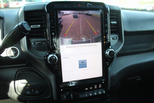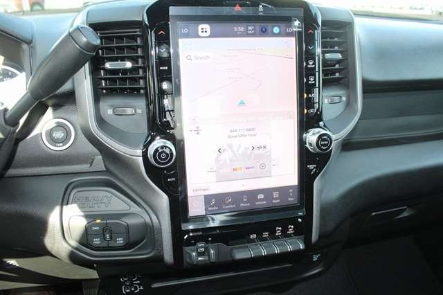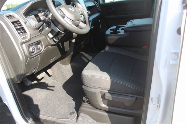 Bed Convenience Group (LED Bed Lighting and MOPAR Spray In Bedliner), Quick Order Package 24A Tradesman, Tradesman Level 2 Equipment Group (115V Auxiliary Front Power Outlet, 12`` Touchscreen Display, 2 Way Rear Headrest Seat, 4 Way Front Headrests, 40/20/40 Split Bench Seat, 400W Inverter, 4G LTE Wi-Fi Hot Spot, Air Conditioning ATC w/Dual Zone Control, Alexa Built-In, Anti-Spin Differential Rear Axle, Apple CarPlay, Auto-Dimming Rear-View Mirror, Black Exterior Mirrors, Bright Front Bumper, Bright Rear Bumper, Carpet Floor Covering, Center Hub, Chrome Grille Surround, Cloth 40/20/40 Bench Seat, Connected Travel & Traffic Services, Connectivity - US/Canada, Disassociated Touchscreen Display, Emergency Vehicle Alert System (EVAS), Exterior 115V AC Outlet, Exterior Mirrors Courtesy Lamps, Exterior Mirrors w/Heating Element, Exterior Mirrors w/Supplemental Signals, Front & Rear Floor Mats, Front Armrest w/Cupholders, Global Telematics Box Module (TBM), Google Android Auto, GPS Antenna Input, GPS Navigation, HD Radio, Integrated Voice Command w/Bluetooth, Manual Adjust 4-Way Driver Seat, Manual Adjust 4-Way Front Passenger Seat, Manual Folding Exterior Mirrors, Manual Telescoping Mirrors, Matte Black Mesh Grille w/Chrome, Mirror Running Lights, Mopar Black Tubular Side Steps, Off-Road Info Pages, ParkSense Front/Rear Park Assist System, Power Adjust Mirrors, Power Adjustable Convex Aux Mirrors, Power Heated Folding Telescope Mirrors, Radio: Uconnect 5 Nav w/12.0`` Display, Rear Folding Seat, Rear Power Sliding Window, Remote USB Port - Charge Only, Selectable Tire Fill Alert, SiriusXM Radio Service, SiriusXM w/360L, Storage Tray, Tinted Acoustic Windshield Glass, Trailer Tow Pages, and Wheels: 18`` x 8.0`` Steel Chrome Clad), 3.73 Axle Ratio, 4-Wheel Disc Brakes, 5th Wheel/Gooseneck Towing Prep Group, 6 Speakers, ABS brakes, Air Conditioning, AM/FM radio: SiriusXM, Apple CarPlay/Android Auto, Black Wheel Center Hub, Brake assist, Compass, Delay-off headlights, Driver door bin, Dual front impact airbags, Dual front side impact airbags, Electronic Stability Control, Front anti-roll bar, Front Center Armrest w/Storage, Front fog lights, Front reading lights, Fully automatic headlights, Heavy Duty Vinyl 40/20/40 Split Bench Seat, Illuminated entry, Low tire pressure warning, Manufacturer`s Statement of Origin, Occupant sensing airbag, Outside temperature display, Overhead airbag, Overhead console, Panic alarm, ParkView Rear Back-Up Camera, Passenger door bin, Passenger vanity mirror, Power steering, Power windows, Radio data system, Radio: Uconnect 5 w/8.4`` Display, Rear anti-roll bar, Rear step bumper, Rear window defroster, Remote keyless entry, Speed control, Tachometer, Tilt steering wheel, Traction control, Variably intermittent wipers, Voltmeter, and Wheels: 17`` x 7.5`` Black Steel Styled.