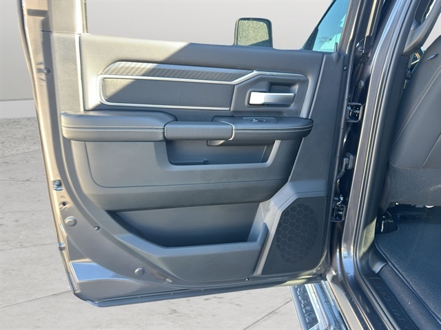 Quick Order Package 24Z Big Horn. Big Horn Level 1 Plus Equipment Group: Google Android Auto; SiriusXM Radio Service; For Details. Visit DriveUconnect.com; For More Info. Call 800-643-2112; Integrated Voice Command with Bluetooth; Emergency Vehicle Alert System (EVAS); 12" Touchscreen Display; Premium Cloth 40/20/40 Bench Seat; Glove Box Lamp; Auto Power-Folding Mirrors; Footwell Courtesy Lamp; Anti-Spin Differential Rear Axle; Mirror Running Lights; MOPAR Deployable Bed Step; Alexa Built-In; Apple CarPlay; Power-Adjustable Convex Aux Mirrors; Forward and Reverse Utility Lights; Locking Lower Glove Box; Remote Start System; 9 Alpine Speakers with Subwoofer; Disassociated Touchscreen Display; Dual Glove Boxes; 2nd Row in Floor Storage Bins; Rear View Auto Dim Mirror; Rear Dome with On/off Switch Lamp; LED Bed Lighting; Connectivity - US/Canada; GPS Navigation; 4G LTE Wi-Fi Hot Spot; GPS Antenna Input; Exterior Mirrors with Heating Element; SiriusXM with 360L; Global Telematics Box Module; Connected Travel and Traffic Services; Foam Bottle Insert (door Trim Panel); Black Exterior Mirrors; Big Horn Instrument Panel Badge; Off-Road Info Pages; Selectable Tire Fill Alert; Trailer Tow Pages; HD Radio; Uconnect 5 Navigation with 12.0" Display Radio; Power Heated Folding Telescopic Mirrors; Exterior Mirrors with Supplemental Signals; Steering Wheel Mounted Audio Controls; Exterior Mirrors Courtesy Lamps; Air Conditioning ATC with Dual Zone Control; MOPAR Spray in Bedliner; Power Adjust Mirrors; Luxury Steering Wheel; Power Telescoping Mirrors. Heated Seats and Wheel Group: Heated Front Seats; Heated Steering Wheel. Quick Order Package 2UZ Big Horn. Premium Cloth 40/20/40 Bench Seat. Chrome Flat Wheel-To-wheel Side Steps. 5th Wheel/gooseneck Towing Prep Group. Anti-Spin Differential Rear Axle. MyFlexCare Service Diesel. Remote Start System. Granite Crystal Met CC. Rear Wheelhouse Liners. Power 2-Way Driver Lumbar Adjust. Transfer Case Skid Plate Shield. **Equipment listed is based on original vehicle build and subject to change. Please confirm the accuracy of the included equipment by calling the dealer prior to purchase.**