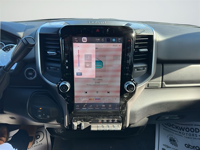| Visit DriveUconnect.com; For More Info | Call 800-643-2112; Integrated Voice Command with Bluetooth; Emergency Vehicle Alert System (EVAS); 12" Touchscreen Display; Premium Cloth 40/20/40 Bench Seat; Glove Box Lamp; Auto Power-Folding Mirrors; Footwell Courtesy Lamp; Anti-Spin Differential Rear Axle; Mirror Running Lights; MOPAR Deployable Bed Step; Alexa Built-In; Apple CarPlay; Power-Adjustable Convex Aux Mirrors; Forward and Reverse Utility Lights; Locking Lower Glove Box; Remote Start System; 9 Alpine Speakers with Subwoofer; Disassociated Touchscreen Display; Dual Glove Boxes; 2nd Row in Floor Storage Bins; Rear View Auto Dim Mirror; Rear Dome with On/off Switch Lamp; LED Bed Lighting; Connectivity - US/Canada; GPS Navigation; 4G LTE Wi-Fi Hot Spot; GPS Antenna Input; Exterior Mirrors with Heating Element; SiriusXM with 360L; Global Telematics Box Module; Connected Travel and Traffic Services; Foam Bottle Insert (door Trim Panel); Black Exterior Mirrors; Big Horn Instrument Panel Badge; Off-Road Info Pages; Selectable Tire Fill Alert; Trailer Tow Pages; HD Radio; Uconnect 5 Navigation with 12.0" Display Radio; Power Heated Folding Telescopic Mirrors; Exterior Mirrors with Supplemental Signals; Steering Wheel Mounted Audio Controls; Exterior Mirrors Courtesy Lamps; Air Conditioning ATC with Dual Zone Control; MOPAR Spray in Bedliner; Power Adjust Mirrors; Luxury Steering Wheel; Power Telescoping Mirrors |