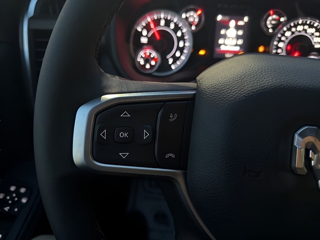 | Visit DriveUconnect.com; For More Info | Call 800-643-2112; Integrated Voice Command with Bluetooth; Emergency Vehicle Alert System (EVAS); 12" Touchscreen Display; Premium Cloth 40/20/40 Bench Seat; Glove Box Lamp; Auto Power-Folding Mirrors; Footwell Courtesy Lamp; Anti-Spin Differential Rear Axle; Mirror Running Lights; MOPAR Deployable Bed Step; Alexa Built-In; Apple CarPlay; Power-Adjustable Convex Aux Mirrors; Forward and Reverse Utility Lights; Locking Lower Glove Box; Remote Start System; 9 Alpine Speakers with Subwoofer; Disassociated Touchscreen Display; Dual Glove Boxes; 2nd Row in Floor Storage Bins; Rear View Auto Dim Mirror; Rear Dome with On/off Switch Lamp; LED Bed Lighting; Connectivity - US/Canada; GPS Navigation; 4G LTE Wi-Fi Hot Spot; GPS Antenna Input; Exterior Mirrors with Heating Element; SiriusXM with 360L; Global Telematics Box Module; Connected Travel and Traffic Services; Foam Bottle Insert (door Trim Panel); Black Exterior Mirrors; Big Horn Instrument Panel Badge; Off-Road Info Pages; Selectable Tire Fill Alert; Trailer Tow Pages; HD Radio; Uconnect 5 Navigation with 12.0" Display Radio; Power Heated Folding Telescopic Mirrors; Exterior Mirrors with Supplemental Signals; Steering Wheel Mounted Audio Controls; Exterior Mirrors Courtesy Lamps; Air Conditioning ATC with Dual Zone Control; MOPAR Spray in Bedliner; Power Adjust Mirrors; Luxury Steering Wheel; Power Telescoping Mirrors |