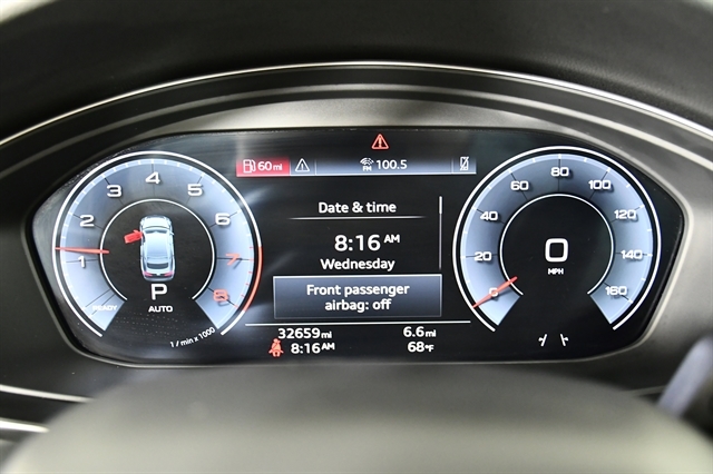 Check out the rest of the great features on this car! 10 Speakers, 4-Wheel Disc Brakes, ABS brakes, Air Conditioning, Alloy wheels, AM/FM radio, Anti-whiplash front head restraints, Auto High-beam Headlights, Auto-dimming Rear-View mirror, Automatic temperature control, Brake assist, Bumpers: body-color, Compass, Delay-off headlights, Driver door bin, Driver vanity mirror, Dual front impact airbags, Dual front side impact airbags, Electronic Stability Control, Emergency communication system: Audi connect CARE, Exterior Parking Camera Rear, Four wheel independent suspension, Front anti-roll bar, Front Bucket Seats, Front Center Armrest, Front dual zone A/C, Front fog lights, Front reading lights, Garage door transmitter: HomeLink, Genuine wood console insert, Genuine wood dashboard insert, Genuine wood door panel insert, Heated door mirrors, Heated front seats, Heated Front Sport Seats, Heated steering wheel, Illuminated entry, Knee airbag, Leather Seating Surfaces, Leather Shift Knob, Leather steering wheel, Low tire pressure warning, Occupant sensing airbag, Outside temperature display, Overhead airbag, Overhead console, Panic alarm, Passenger door bin, Passenger vanity mirror, Power adjustable front head restraints, Power door mirrors, Power driver seat, Power Liftgate, Power moonroof, Power passenger seat, Power steering, Power windows, Radio data system, Radio: Audi Sound System, Rain sensing wipers, Rear air conditioning, Rear anti-roll bar, Rear reading lights, Rear seat center armrest, Rear window defroster, Remote keyless entry, Speed control, Speed-sensing steering, Speed-Sensitive Wipers, Split folding rear seat, Steering wheel mounted audio controls, Tachometer, Telescoping steering wheel, Tilt steering wheel, Traction control, Trip computer, Turn signal indicator mirrors, Variably intermittent wipers, and Wheels: 18 5-Double-Spoke Design.