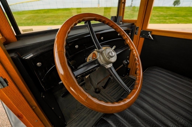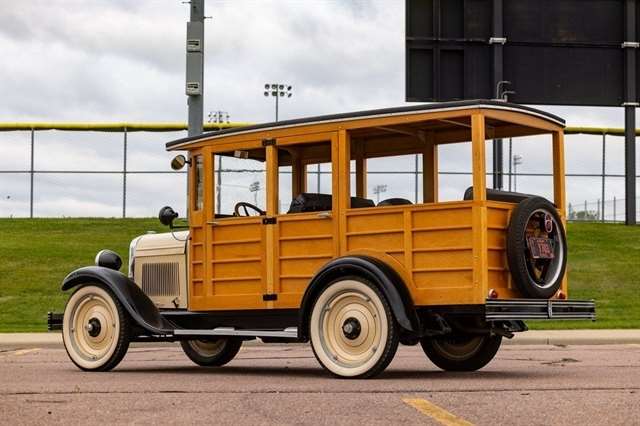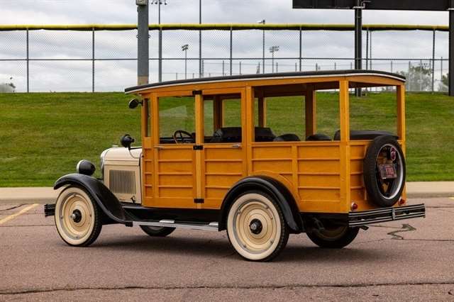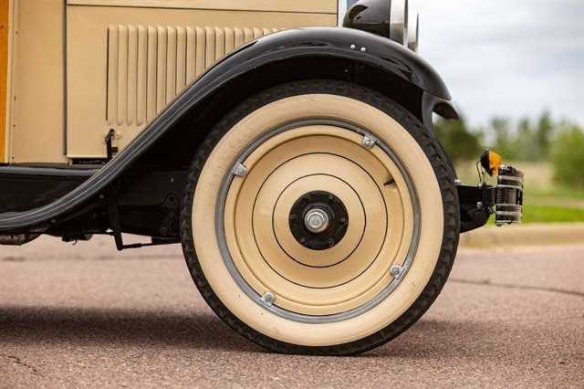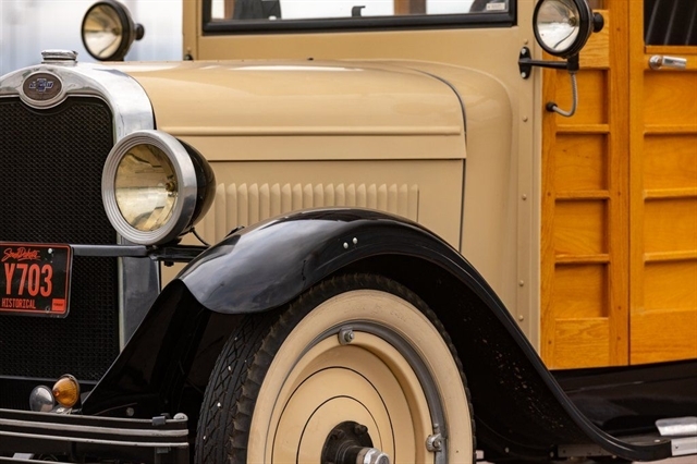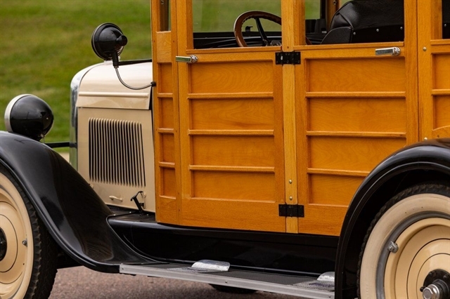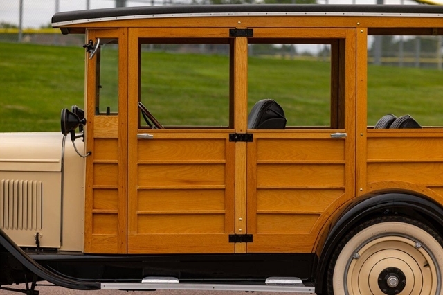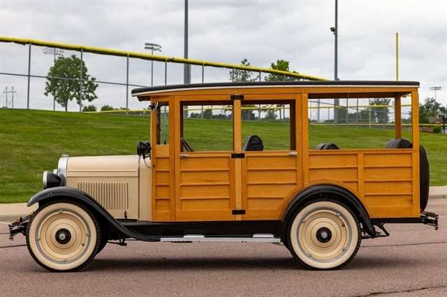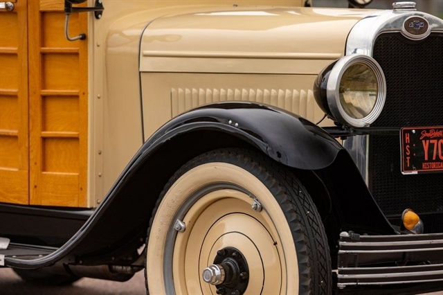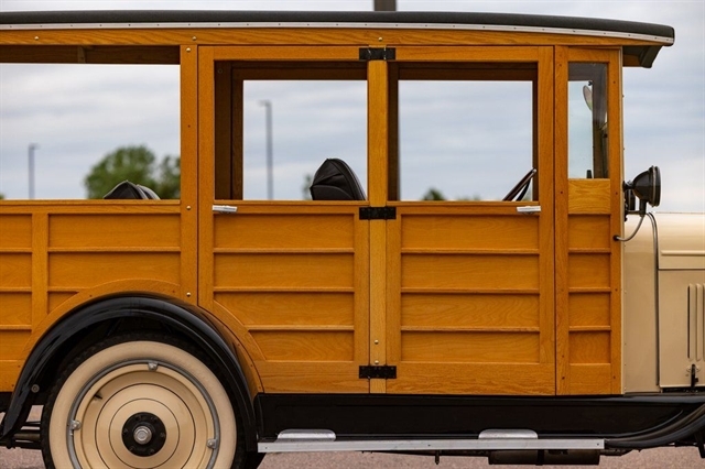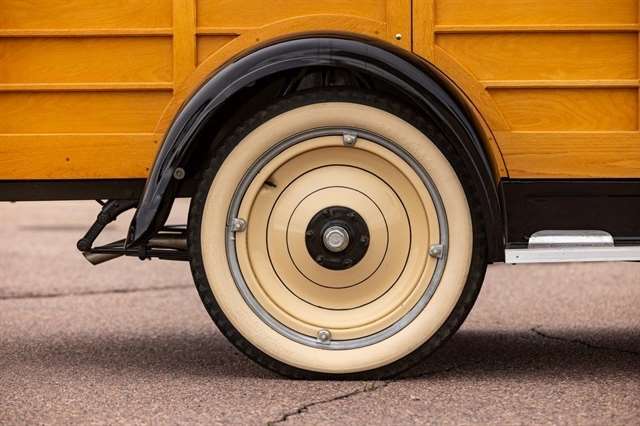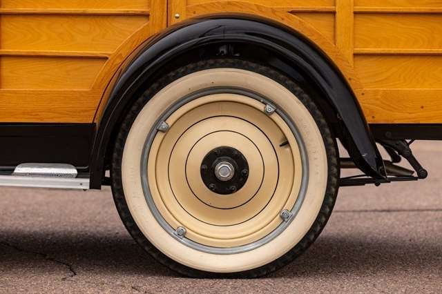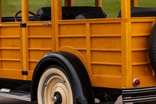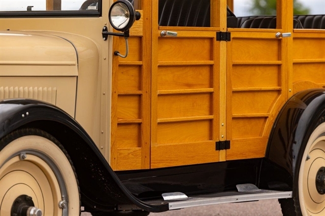 2.8L Inline-4, 3-Speed Manual, RWD, Genuine Wood Coachwork, Tan/Black Exterior, Black Vinyl Seats, Wood Steering Wheel, Vintage Instrument Cluster, Wide Whitewall Tires