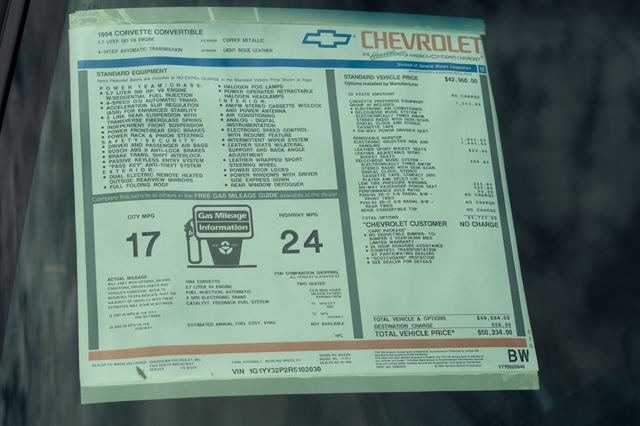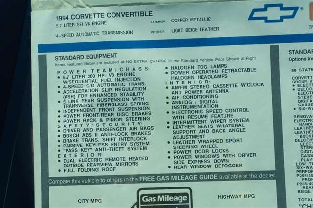 1994 CHEVROLET CORVETTE CONVERTIBLE