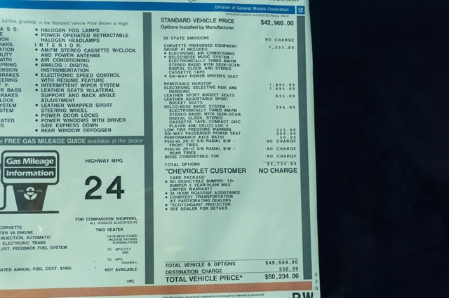 The car retains its factory hard top, which has never been removed, making this one of the most original examples you’ll ever find. Equipped with Electronic Ride Control, leather sport bucket seats, six-way power seats, and the performance axle ratio, this Corvette was optioned for both comfort and performance.