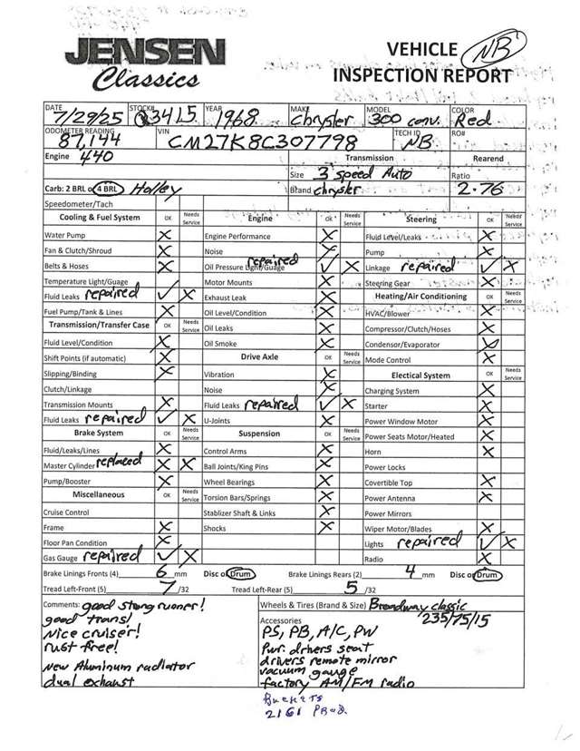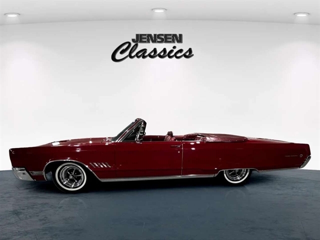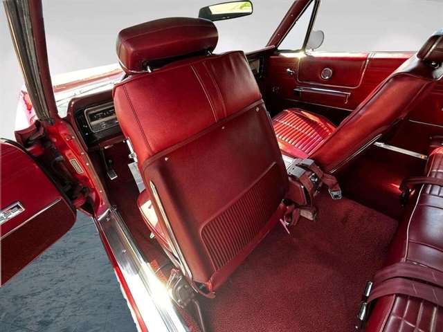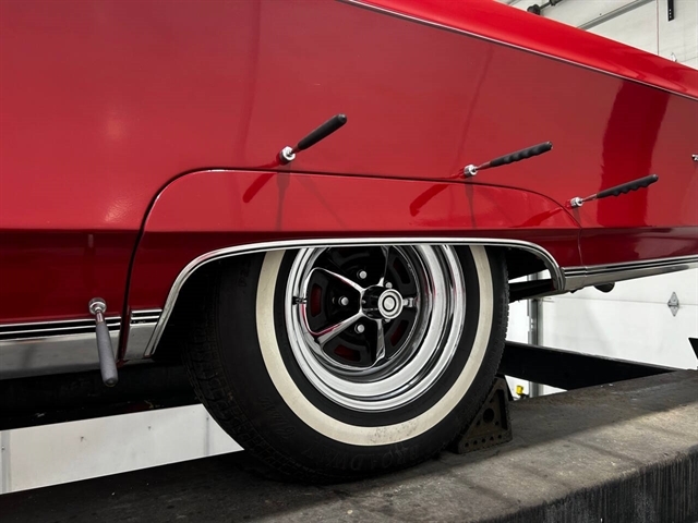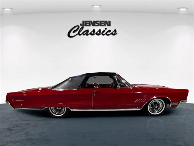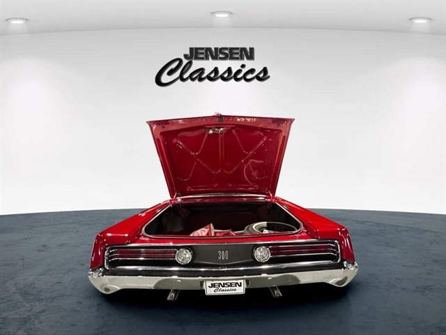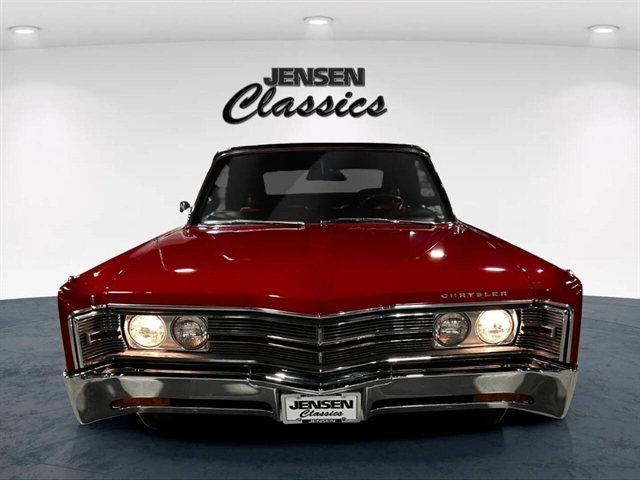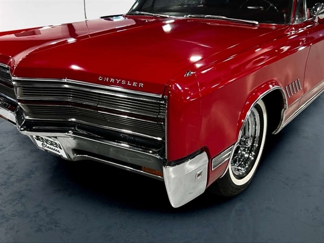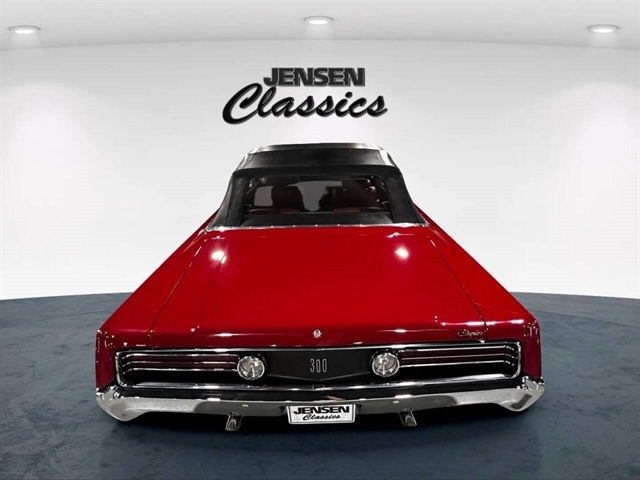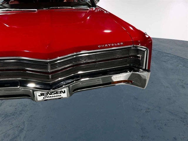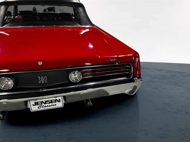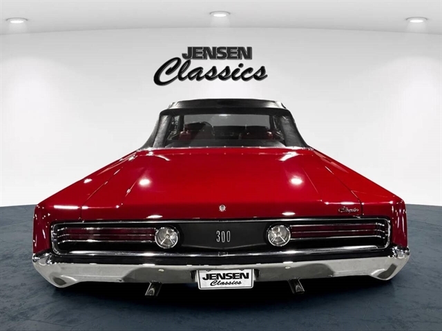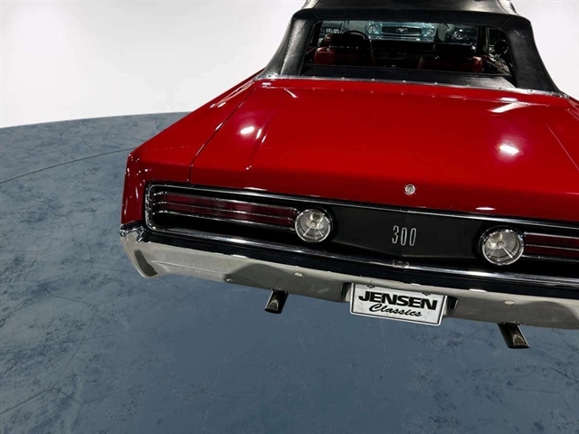 1968 Chrysler 300 Convertible The Chrysler 300 models for 1968 were distinguished by a special grill, front bumper and body decoration treatments. The grill featured a blacked-out finish highlighted by a full width, horizontal bar design and incorporated hidden headlights. The base power plant for the Chrysler 300 was a 440 CI four-barrel carbureted V-8. There were only 2161 Chrysler 300 convertibles produced in 1968. Our1968 300 is stellar. “Scorch Red “paint, metallic red seating and door panels, new red carpeting, and a like new black vinyl convertible top ……striking! 440 magnum V-8 power, Chrysler three-speed automatic transmission, and for a car of its size, surprising power. Power steering, power brakes, cold air conditioning, power windows, power driver seat, drivers remote mirror, vacuum gauge, factory AM/FM radio and more. Riding on white side wall tires mounted to a set of factory OEM Road wheels. (Currently resides at the dealership owner’s home )