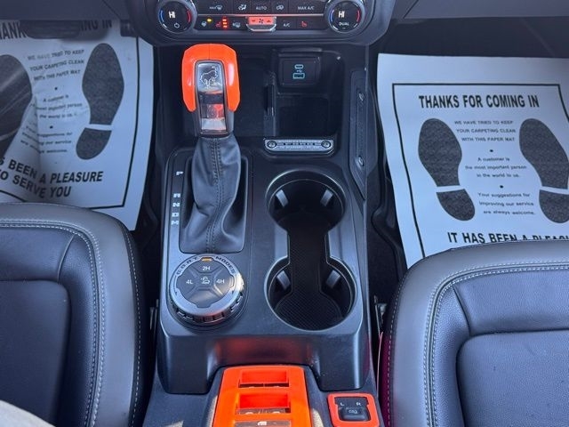 The heart of this Bronco is a powerful 2.3L EcoBoost I-4 engine paired with a smooth-shifting 10-Speed Automatic transmission and 4-Wheel Drive. With an impressive 18 MPG in the city and 22 MPG on the highway, this SUV delivers a thrilling yet efficient performance.