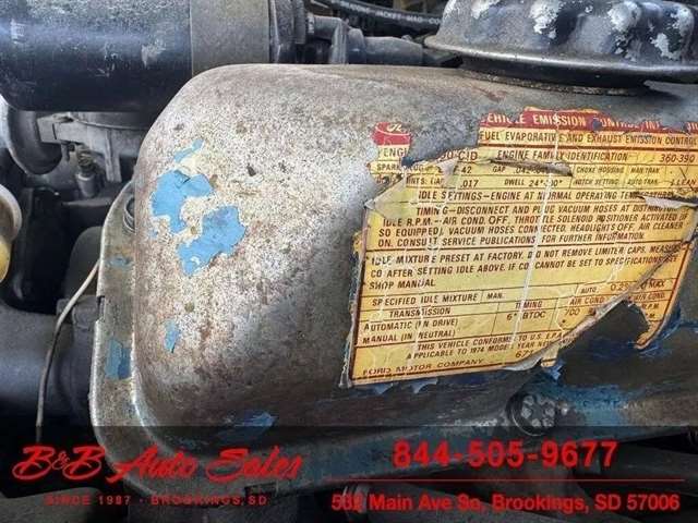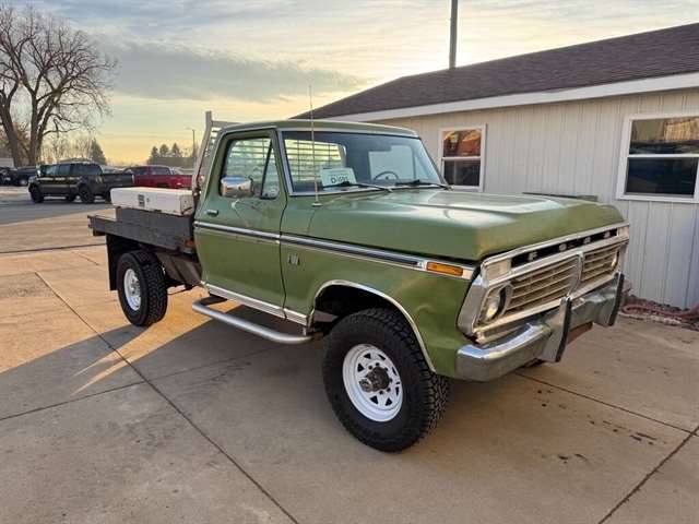 *360 V8*4x4*AUTOMATIC MECHANICAL- This F250 has been thru our inspection.*Replaced transfer case seal*Replaced pinion seal*Replaced Speedometer cableEXTERIOR- The body is in good shape. It has had a different cab put on at one time, reason for the ``F10, 1/2 ton vin`` . Ready to go to work with the flatbed. There is some rust in cab corners. See the video for an up close inspection. Text Dirk at 605-695-7391 for running and driving video`sINTERIOR- The interior is in good shape.DIRK`S COMMENTS- With 38 years of experience I will give you my opinion of the F250. It is a very affordable ``High Boy`` 3/4 ton truck. Came out of Wyoming and good solid truck to use or restore. UNDERNEATH- The underneath is solid. Floors are in good shape and have some original undercoat on them. History- A truck from WyomingTEST DRIVE- We personally test drive our vehicles so we know what they drive like. I have drove this one 10 miles and it drives good.Located at 324 W Main White,SD 57276BUY WITH CONFIDENCE as this 1974 Ford F250 has gone thru inspection and test drive. We personally work and drive these ourselves so can answer any questions you may have. We show you any issues with over 100 pictures and videos of a walk around, running and driving.VALUE- We price our vehicles to market value and try to be one of the best prices of vehicles in comparable condition. Our goal is to give you a good buy on a vehicle you are going to have fun with and enjoy. We do have a document fee but only $50 which is lower than most other dealers.LIKE IT OR RETURN IT- As being in business for 37 years we do not want to sell anybody a vehicle they do not want. As many of our vehicles are sold site unseen we will take the vehicle back and give a refund minus shipping and a restocking fee. You are responsible for the shipping both ways and a $1000 restocking fee. You have 3 days to notify us you are not happy with the vehicle and we will start the return process. Ask for more details.VIDEOS- Call, text or email for videos of driving the vehicle and of the engine running and accessories working. Text Dirk at 605-695-7391. Call or text Dirk at 605-695-7391 or Darren 605-695-9555 with any questions. B and B Auto Sales, 324 W Main White,SD 57276