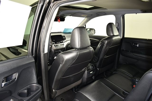 Check out the rest of the great features on this car! AWD, 18 Machine-Finished Alloy Wheels, 3rd row seats: split-bench, 4-Wheel Disc Brakes, 4.25 Axle Ratio, 7 Speakers, A/V remote: CabinControl, ABS brakes, Air Conditioning, Alloy wheels, AM/FM radio: SiriusXM, Apple CarPlay/Android Auto, Auto High-beam Headlights, Auto-dimming Rear-View mirror, Automatic temperature control, Blind Spot Information (BSI) System warning, Brake assist, Bumpers: body-color, Delay-off headlights, Driver door bin, Driver vanity mirror, Dual front impact airbags, Dual front side impact airbags, Electronic Stability Control, Emergency communication system: HondaLink Assist, Exterior Parking Camera Rear, Forward collision: Collision Mitigation Braking System (CMBS) + FCW mitigation, Four wheel independent suspension, Front anti-roll bar, Front Bucket Seats, Front Center Armrest, Front dual zone A/C, Front fog lights, Front reading lights, Fully automatic headlights, Garage door transmitter: HomeLink, Heated door mirrors, Heated Front Bucket Seats, Heated front seats, Illuminated entry, Lane departure: Lane Keeping Assist System (LKAS) active, Leather Seat Trim, Leather Shift Knob, Low tire pressure warning, Memory seat, Occupant sensing airbag, Outside temperature display, Overhead airbag, Overhead console, Panic alarm, Passenger door bin, Passenger vanity mirror, Power door mirrors, Power driver seat, Power Liftgate, Power moonroof, Power passenger seat, Power steering, Power windows, Radio data system, Radio: 215-Watt Audio System, Rear air conditioning, Rear anti-roll bar, Rear reading lights, Rear seat center armrest, Rear window defroster, Rear window wiper, Reclining 3rd row seat, Remote keyless entry, Security system, Speed control, Speed-sensing steering, Speed-Sensitive Wipers, Split folding rear seat, Spoiler, Steering wheel mounted audio controls, Tachometer, Telescoping steering wheel, Tilt steering wheel, Traction control, Trip computer, Turn signal indicator mirrors, and Variably intermittent wipers.