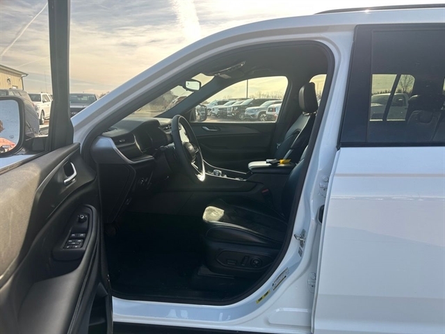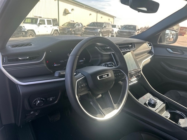 The Altitude Appearance Package and Quick Order Package 23B further enhance the Grand Cherokee L`s appeal, adding premium touches like gloss black exterior accents, a black headliner, and a wireless charging pad. Experience the convenience of a power liftgate, the comfort of a heated steering wheel, and the versatility of 3rd-row USB ports.