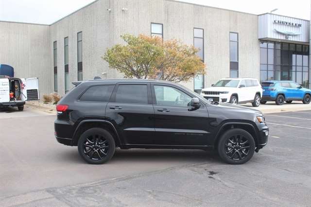 Altitude Appearance Package (Altitude Grille, Dark Day Light Opening Moldings, Dark Headlamp Bezel Finish, Delete Laredo Badge, Gloss Black Jeep Badging, Gloss Black Rear Fascia Applique, Hill Descent Control, Quadra-Trac II 4WD System, Rear Accent/Body Color Fascia, Rear Fascia Black Molded in Color Step Pad, Selec-Terrain System, and Wheels: 20`` x 8.0`` Gloss Black Aluminum), Quick Order Package 2GM Laredo X (DISC) (Black Suede Seats w/Black Stitching, Heated Steering Wheel, Power Liftgate, Remote Start System, Security Alarm, and Steering Wheel Mounted Audio Controls), 3.45 Rear Axle Ratio, 4-Wheel Disc Brakes, 6 Speakers, ABS brakes, Air Conditioning, Alloy wheels, AM/FM radio: SiriusXM, Anti-whiplash front head restraints, Apple CarPlay/Android Auto, Auto-dimming Rear-View mirror, Automatic temperature control, Brake assist, Bumpers: body-color, Cloth Bucket Seats, Compass, Delay-off headlights, Driver door bin, Driver vanity mirror, Dual front impact airbags, Dual front side impact airbags, Electronic Stability Control, Emergency communication system: SiriusXM Guardian, Four wheel independent suspension, Front anti-roll bar, Front Bucket Seats, Front Center Armrest w/Storage, Front dual zone A/C, Front fog lights, Front reading lights, Fully automatic headlights, Heated door mirrors, Illuminated entry, Knee airbag, Leather Shift Knob, Low tire pressure warning, Navigation System, Normal Duty Suspension, Occupant sensing airbag, Outside temperature display, Overhead airbag, Overhead console, Panic alarm, ParkView Rear Back-Up Camera, Passenger door bin, Passenger vanity mirror, Power door mirrors, Power driver seat, Power steering, Power windows, Radio data system, Radio: Uconnect 4C Nav w/8.4`` Display, Rear anti-roll bar, Rear reading lights, Rear seat center armrest, Rear window defroster, Rear window wiper, Remote keyless entry, Speed control, Speed-sensing steering, Speed-Sensitive Wipers, Split folding rear seat, Spoiler, Steering wheel mounted audio controls, Tachometer, Telescoping steering wheel, Tilt steering wheel, Traction control, Trip computer, Variably intermittent wipers, and Wheels: 18`` x 8.0`` Fine Silver Aluminum.