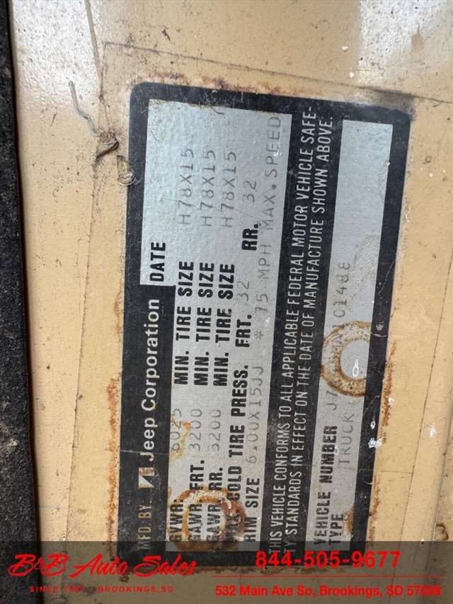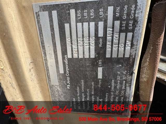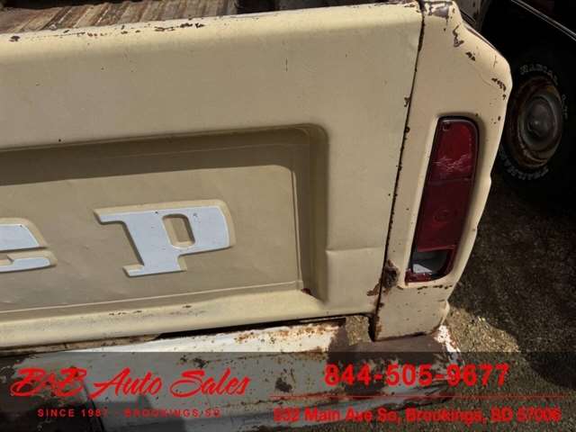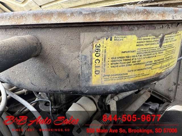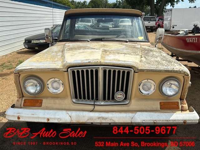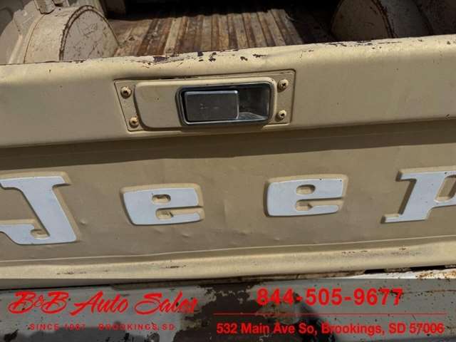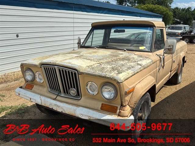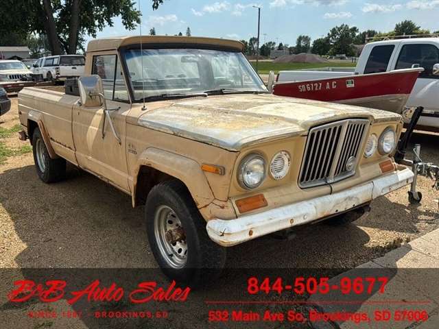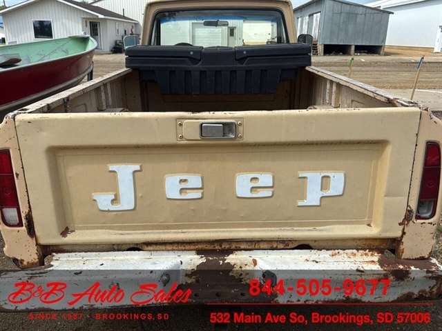 Here is a good project Jeep Pickup 4x4. It does run but engine knocks so will need replaced or rebuilt. Will trailer load. It has a 360 v8, automatic and 4x4. Call or text Dirk at 605-695-7391 or Darren 605-695-9555 with any questions. B and B Auto Sales, 5324 W Main White SD 57276