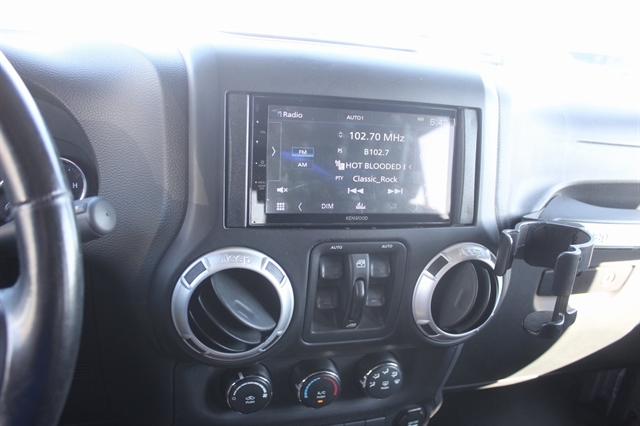 Connectivity Group (Tire Pressure Monitoring Display and Vehicle Information Center), Dual Top Group (Premium Black Sunrider Soft Top and Sunrider Soft Top), Max Tow Package (3.73 Rear Axle Ratio, Class II Receiver Hitch, and Trailer Tow w/4-Pin Connector Wiring), Quick Order Package 24G, 1-Year SIRIUSXM Travel Link Service, 18`` x 7.5`` Polished Satin Carbon Wheels, 3.21 Rear Axle Ratio, 4-Wheel Disc Brakes, 40GB Hard Drive w/28GB Available, 6.5`` Touch Screen Display, 7 Speakers, ABS brakes, Air Conditioning, Alloy wheels, AM/FM radio, Anti-Spin Differential Rear Axle, Audio Jack Input for Mobile Devices, Auto-dimming Rear-View mirror, Brake assist, CD player, Cloth Bucket Seats, Compass, Driver door bin, Driver vanity mirror, Dual front impact airbags, Electronic Stability Control, Front anti-roll bar, Front Bucket Seats, Front Center Armrest w/Storage, Front fog lights, Front reading lights, Fully automatic headlights, GPS Navigation, Heated door mirrors, Heavy Duty Suspension w/Gas Shocks, Illuminated entry, Integrated roll-over protection, Leather steering wheel, Low tire pressure warning, Occupant sensing airbag, Outside temperature display, Panic alarm, Passenger door bin, Passenger vanity mirror, Power door mirrors, Power steering, Power windows, Radio data system, Radio: Uconnect 130 AM/FM/CD/MP3, Radio: Uconnect 430N CD/DVD/MP3/HDD/NAV, Rear anti-roll bar, Remote keyless entry, Remote Start System, Remote USB Port, Security system, SIRIUSXM Travel Link, Speed control, Split folding rear seat, Steering wheel mounted audio controls, Tachometer, Tilt steering wheel, Traction control, Trip computer, and Variably intermittent wipers.