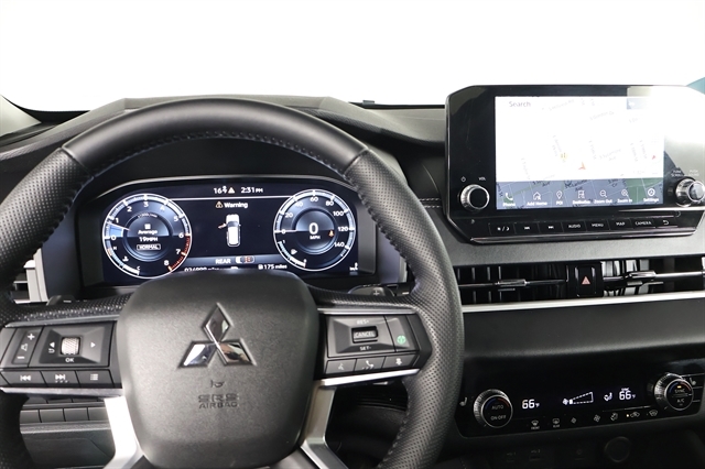 Check out the rest of the great features on this car! 4WD, 3rd row seats: split-bench, 4-Wheel Disc Brakes, ABS brakes, Air Conditioning, Alloy wheels, AM/FM radio: SiriusXM, Android Auto & Apple CarPlay, Auto High-beam Headlights, Automatic temperature control, Axle Ratio: 5.694, Brake assist, Bumpers: body-color, Driver door bin, Driver vanity mirror, Dual front impact airbags, Dual front side impact airbags, Electronic Stability Control, Emergency communication system: Mitsubishi Connect w/ 24-month trial, Four wheel independent suspension, Front anti-roll bar, Front Bucket Seats, Front Center Armrest w/Storage, Front dual zone A/C, Front fog lights, Front reading lights, Fully automatic headlights, Headlight cleaning, Heated door mirrors, Heated Front Bucket Seats, Heated front seats, Illuminated entry, Knee airbag, Leather Shift Knob, Leather steering wheel, Low tire pressure warning, Navigation system: Powered by TOMTOM, Occupant sensing airbag, Outside temperature display, Overhead airbag, Overhead console, Panic alarm, Passenger door bin, Passenger vanity mirror, Power door mirrors, Power driver seat, Power Liftgate, Power steering, Power windows, Radio data system, Radio: AM/FM 9.0 Navigation w/Smartphone Link, Rain sensing wipers, Rear anti-roll bar, Rear seat center armrest, Rear side impact airbag, Rear window defroster, Rear window wiper, Reclining 3rd row seat, Remote keyless entry, Security system, Speed control, Speed-Sensitive Wipers, Split folding rear seat, Spoiler, Steering wheel mounted audio controls, Synthetic Leather Seat Trim, Tachometer, Telescoping steering wheel, Tilt steering wheel, Traction control, Trip computer, Turn signal indicator mirrors, Variably intermittent wipers, and Wheels: 20 x 8J Two-Tone Alloy.