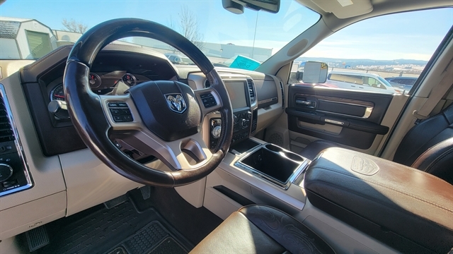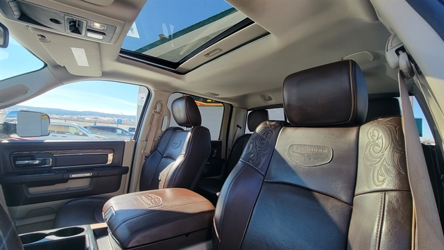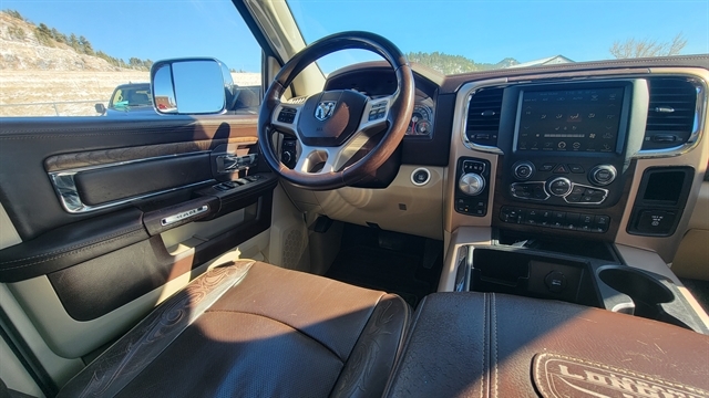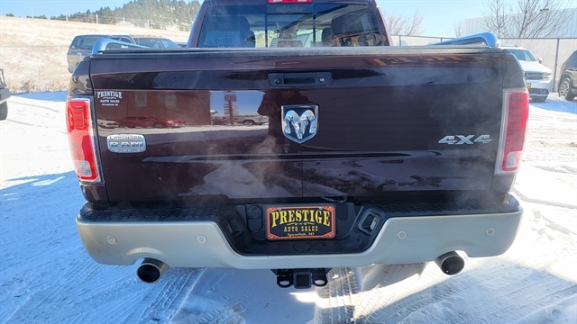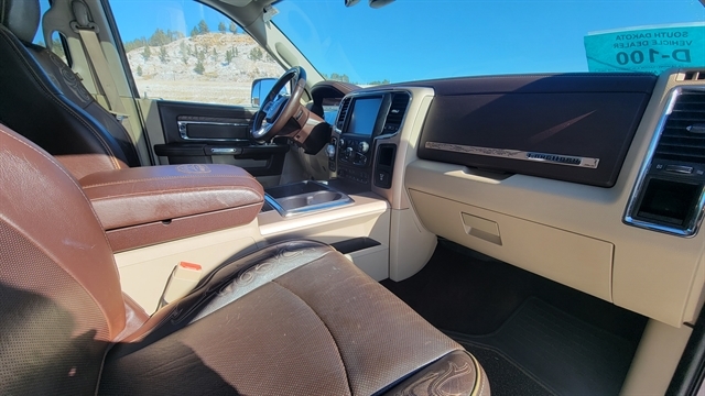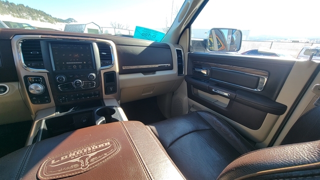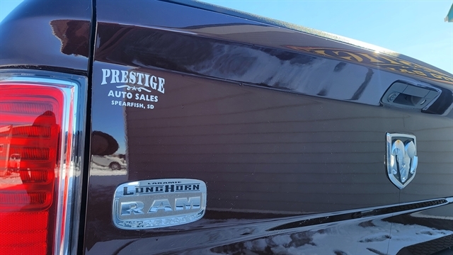 YOU'LL LOVE THIS 2015 RAM 1500 LARAMIE LONG HORN EDITION! POWERED BY THE 5.7L V8 GAS ENGINE WITH AUTOMATIC TRANSMISSION AND 4-WHEEL DRIVE. CREW CAB SHORT BED WITH POWER LOCKS, POWER WINDOWS, HEATED EXTERIOR MIRRORS, LEATHER SEATING WITH POWER SEATS, MEMORY POSITIONS, HEATED AND COOLED FRONT SEATS WITH HEATED REAR SEATS! TUNE INTO SATELLITE RADIO, PLUG IN YOUR PHONE OR CONNECT TO BLUETOOTH AND ENJOY YOUR ALPINE PREMIUM AUDIO WITH DRIVING WITH CRUISE CONTROL! ADDITIONAL FEATURES INCLUDE ADJUSTABLE PEDALS, POWER SUNROOF, ALLOY WHEELS ALL-WEATHER MATS, HEATED STEERING WHEEL, FIXED RUNNING BOARDS, TOW PACKAGE WITH TRAILERING BRAKE, SOFT TONNEAU COVER BACKUP CAMERA, REVERSE SENSORS, NAVIGATION, REMOTE START AND MUCH MORE! CALL(605)642-1900 TODAY OR STOP IN FOR A TEST DRIVE!