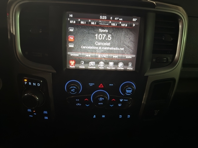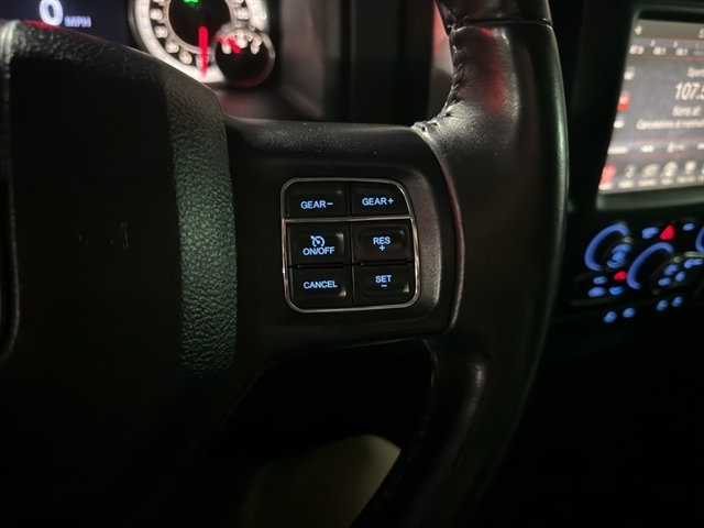 Bluetooth technology is built into the Ram 1500, keeping your hands on the steering wheel and your focus on the road. This model keeps you comfortable with Auto Climate. See what's behind you with the back up camera on the vehicle. Never get into a cold vehicle again with the remote start feature on this vehicle. The rear parking assist technology on this Ram 1500 will put you at ease when reversing. The system alerts you as you get closer to an obstruction. This model has a V8, 5.7L high output engine. Maintaining a stable interior temperature in this model is easy with the climate control system. When you encounter slick or muddy roads, you can engage the four wheel drive on this model and drive with confidence. This unit is painted with a sleek and sophisticated black color. Help alleviate lower back pain with the driver seat lumbar support in this vehicle.