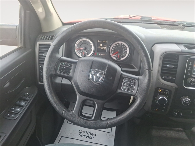 This vehicle has a clean CARFAX vehicle history report. The vehicle is equipped with the latest generation of XM/Sirius Radio. This unit has satellite radio capabilities. Protect this vehicle from unwanted accidents with a cutting edge backup camera system. Bluetooth technology is built into this Ram 1500 Classic, keeping your hands on the steering wheel and your focus on the road. This vehicle is a certified CARFAX 1-owner. Set the temperature exactly where you are most comfortable in it. The fan speed and temperature will automatically adjust to maintain your preferred zone climate. Greater towing safety becomes standard with the installed trailer brake. Quickly unlock it with keyless entry. The Ram 1500 Classic has a V8, 5.7L high output engine. When you encounter slick or muddy roads, you can engage the four wheel drive on the vehicle and drive with confidence. This model gleams with a flashy red exterior. Easily set your speed in the vehicle with a state of the art cruise control system. Increase or decrease velocity with the touch of a button.