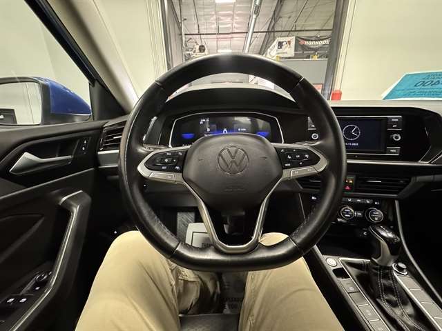 in Rising Blue Metallic and Titan Black Leather, ***CLEAN CARFAX***, **LEATHER**, BLUETOOTH, ALL BOOKS AND KEYS, **Back-Up Camera**, **HEATED SEATS**, Jetta 1.5T SE, 1.5L I-4 DI DOHC Turbocharged, 8-Speed Automatic with Tiptronic, FWD, Rising Blue Metallic, Titan Black Leather, 4-Wheel Disc Brakes, ABS brakes, Auto-dimming Rear-View mirror, Automatic temperature control, Electronic Stability Control, Exterior Parking Camera Rear, Front dual zone A/C, Fully automatic headlights, Heated door mirrors, Heated Front Seats, Leather Shift Knob, Leather steering wheel, Power driver seat, Radio: MIB3 Composition Color w/6.5`` Touchscreen, Rain sensing wipers, Remote keyless entry, Split folding rear seat, Steering wheel mounted audio controls, Telescoping steering wheel, Traction control, V-Tex Leatherette Seat Trim, Wheels: 17`` Twin 5-Spoke Silver Painted Alloy.